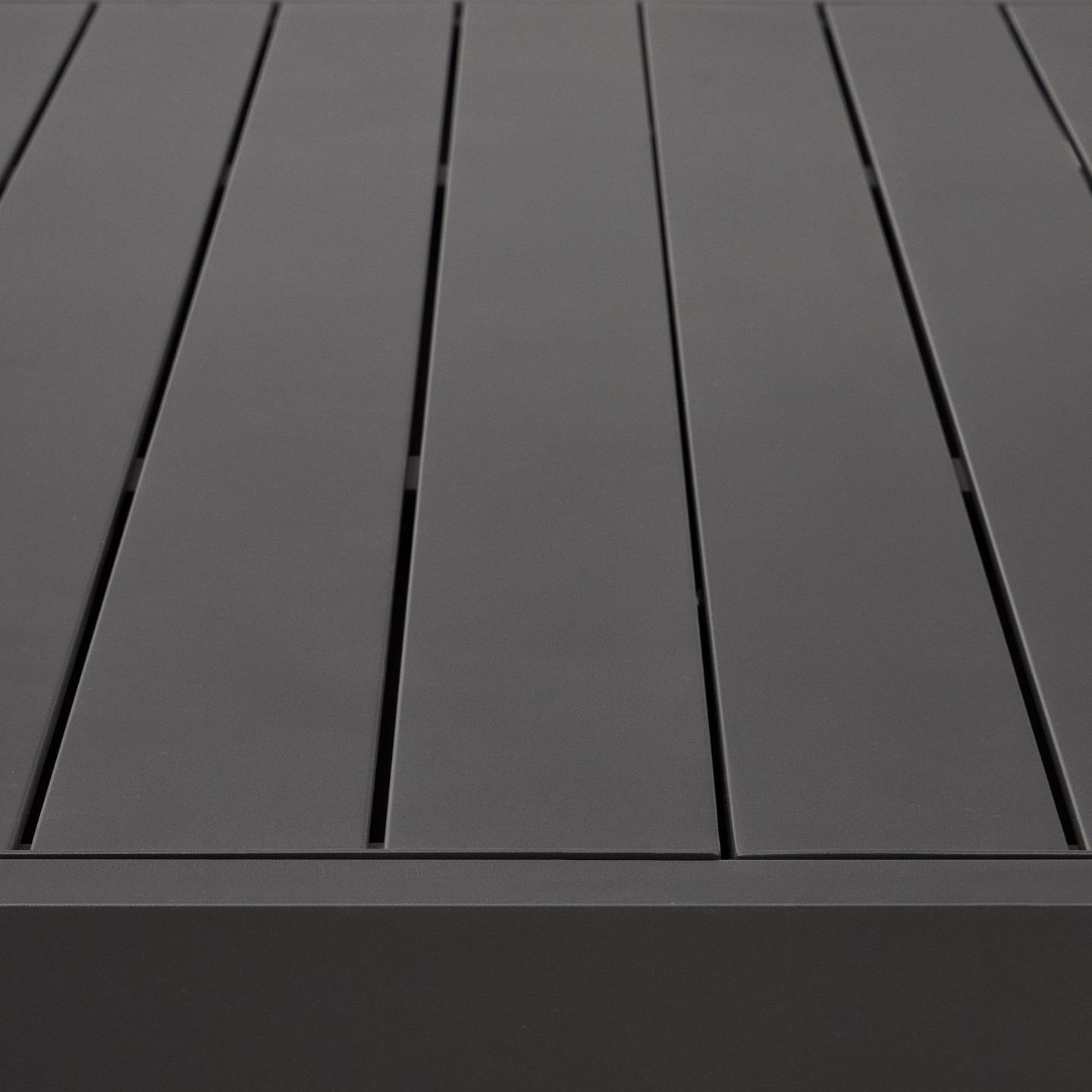 Dzięki możliwości rozkładania, czarny stół ogrodowy Galdana nie tylko zapewnia komfortowe miejsce do korzystania ze słońca, ale również umożliwia elastyczne dostosowanie się do potrzeb użytkownika. Wykorzystaj jego funkcję rozszerzania, aby maksymalnie wykorzystać dostępną przestrzeń na zewnątrz podczas spotkań z rodziną i przyjaciółmi.