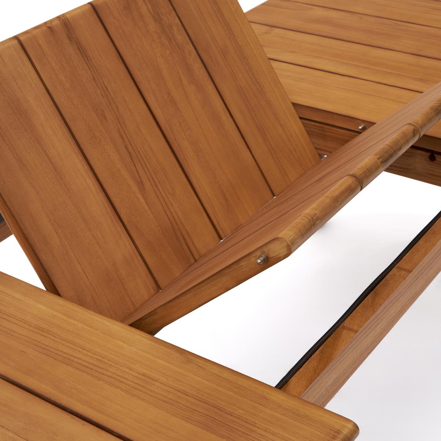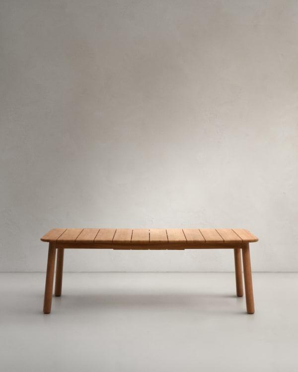 Wykonany z litego drewna tekowego, stół Turqueta wyróżnia się nie tylko elegancją, ale także wyjątkową trwałością i odpornością na warunki atmosferyczne. Drewno tekowe, znane z swojej niezwykłej wytrzymałości na wilgoć i działanie czynników zewnętrznych, sprawia, że stół ten jest idealnym wyborem do użytku na zewnątrz. Bez względu na warunki pogodowe, stół Turqueta zachowuje swój urok i funkcjonalność, będąc niezawodnym towarzyszem w relaksie na świeżym powietrzu.