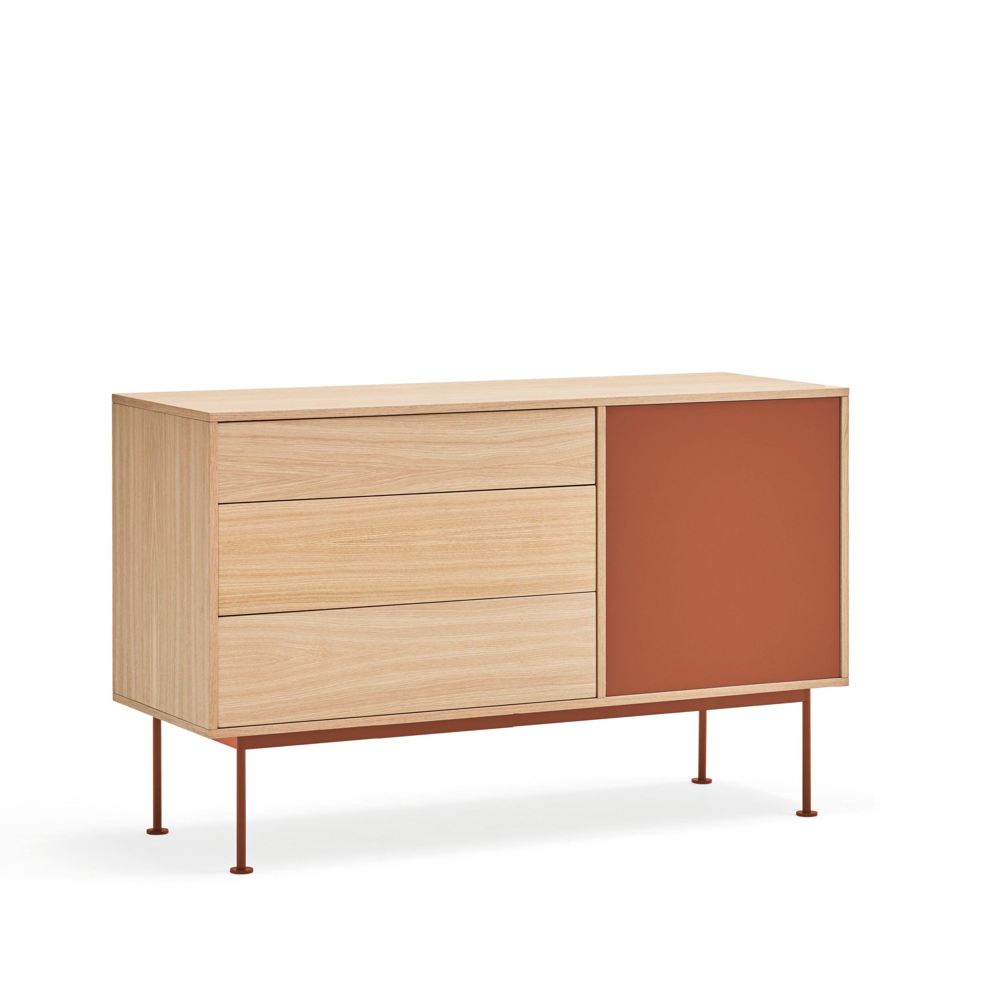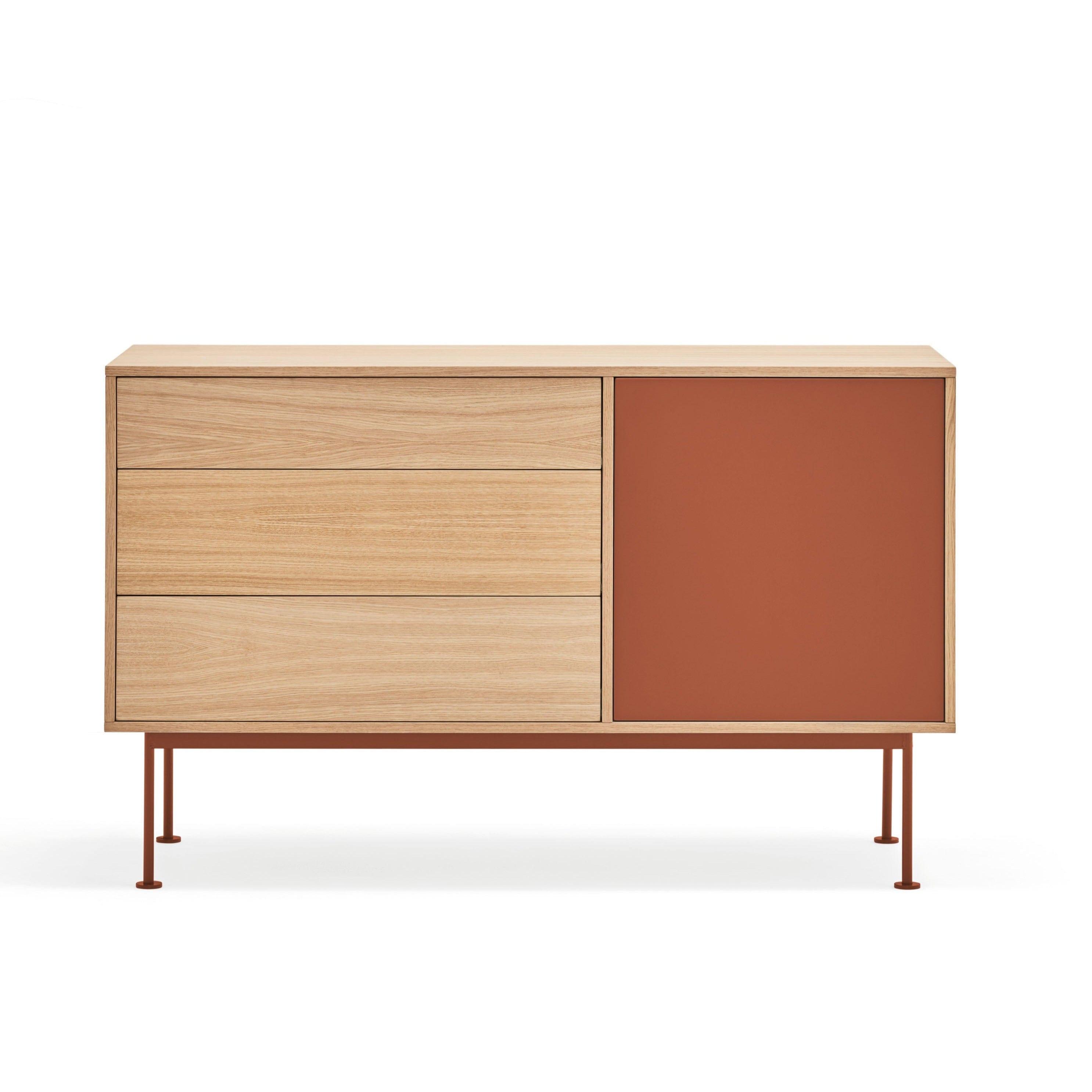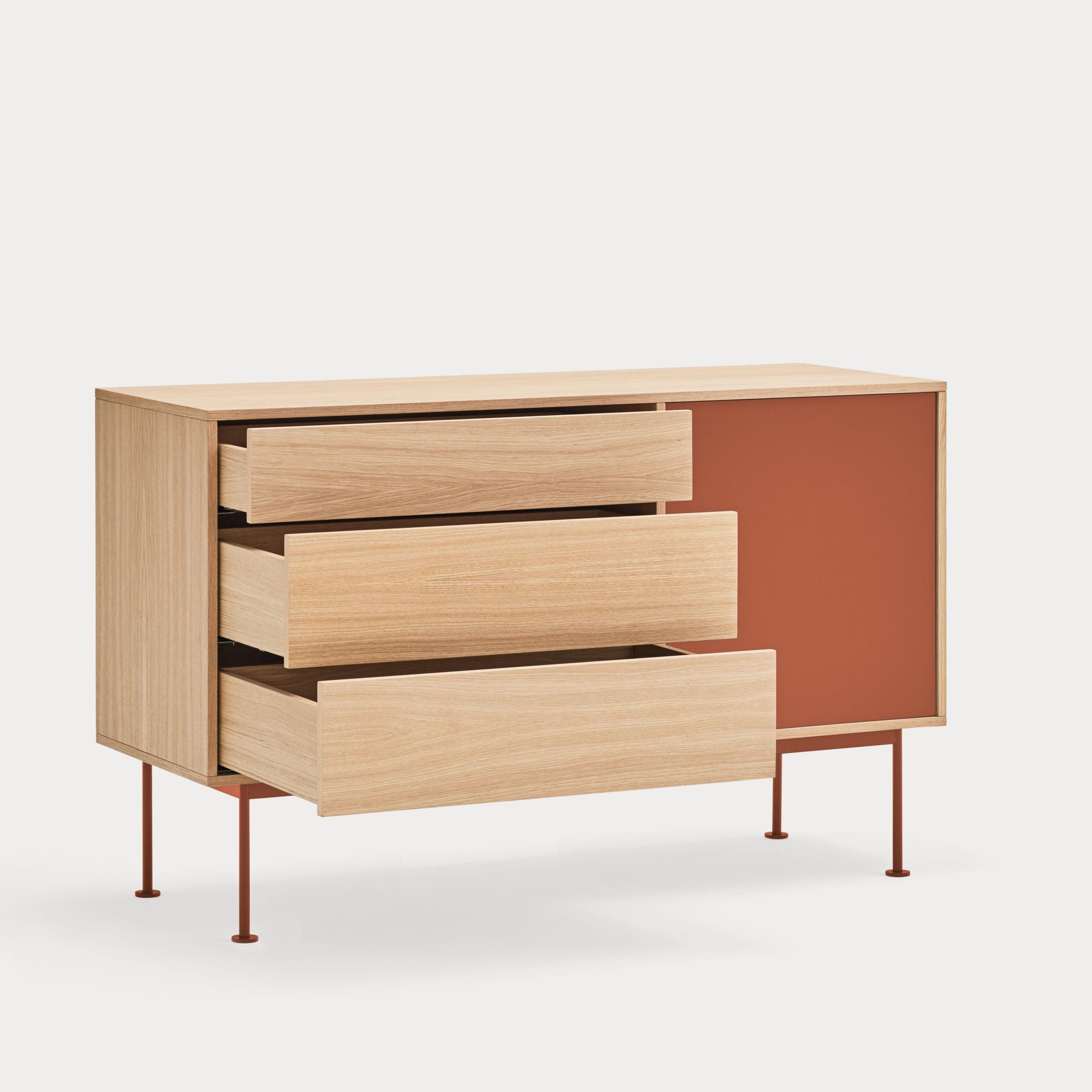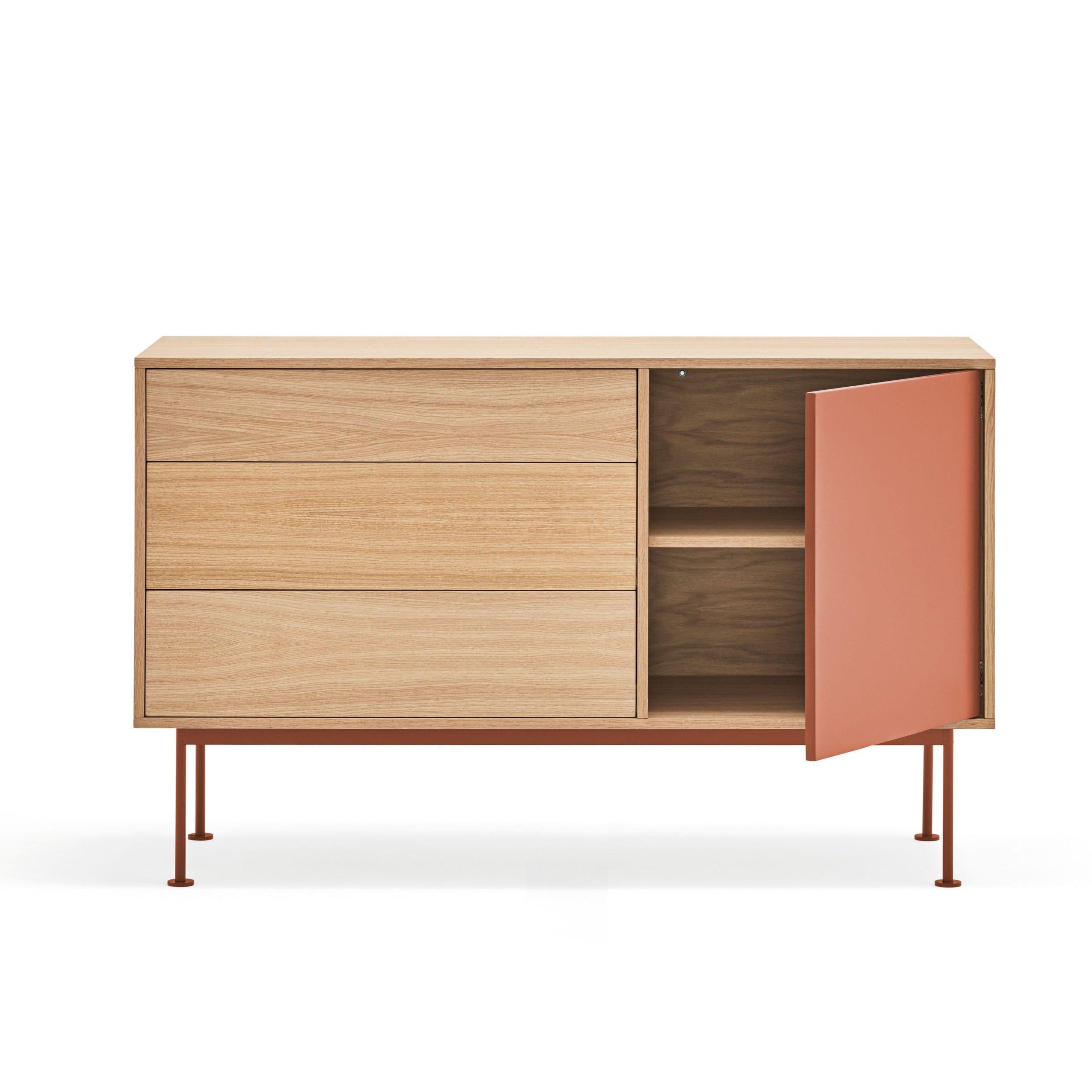 Natuurlijke materialen en een ontwerp dat tot in de details is uitgewerkt — dat is precies kast Yoko. De interessante combinatie van de natuurlijke structuur van eikenhout met een pastelrode tint is een idee van het opmerkelijke duo Eric Cambres en Carlos Garcia.