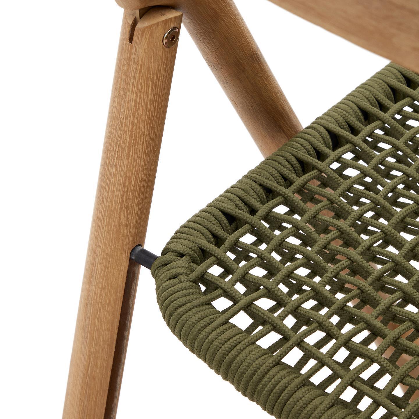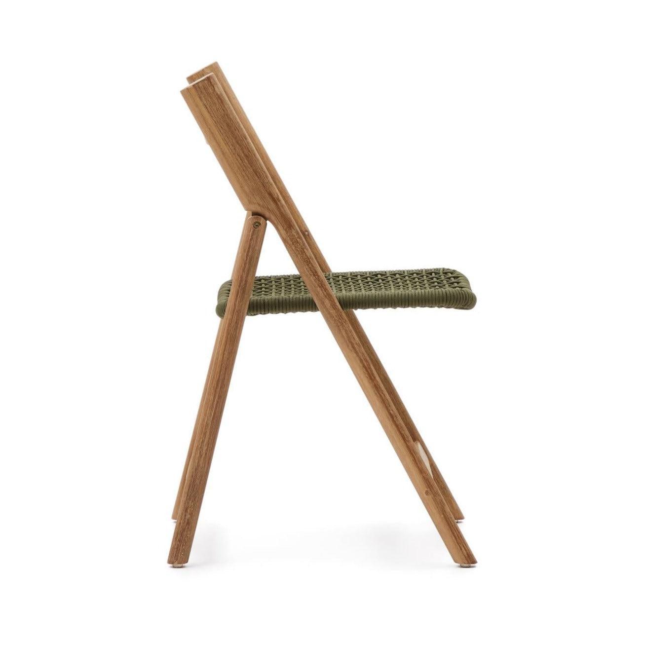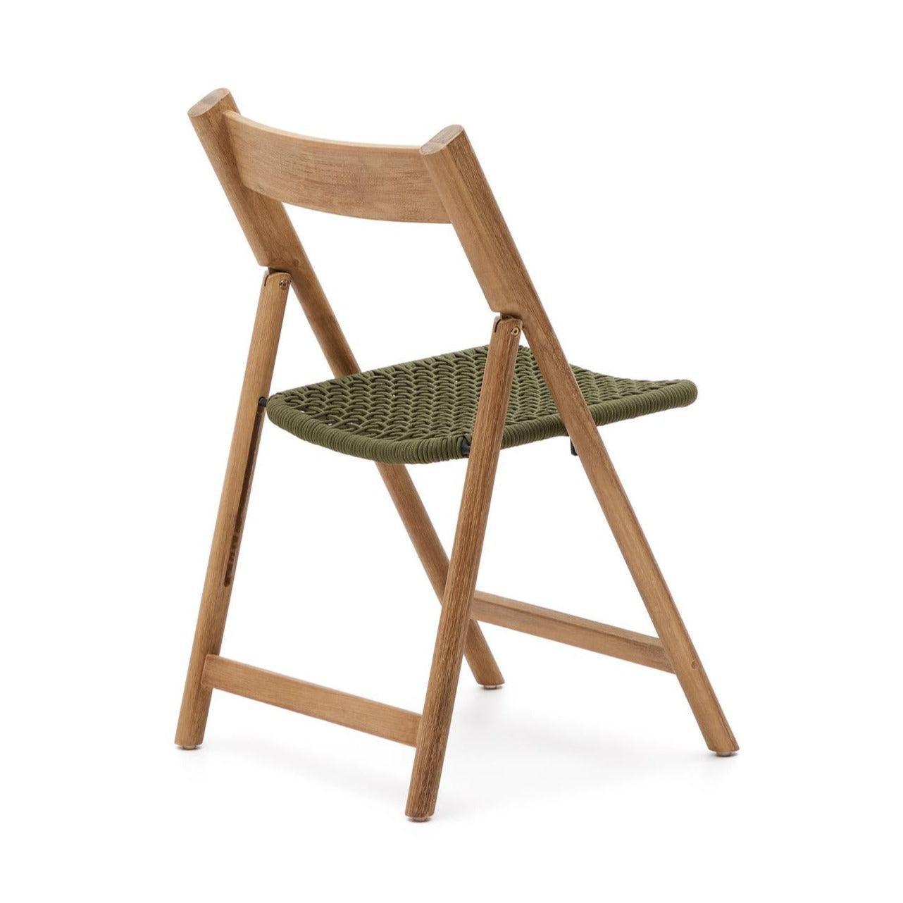 Krzesło składane DANDARA lite drewno akacjowe z zielonym siedziskiem