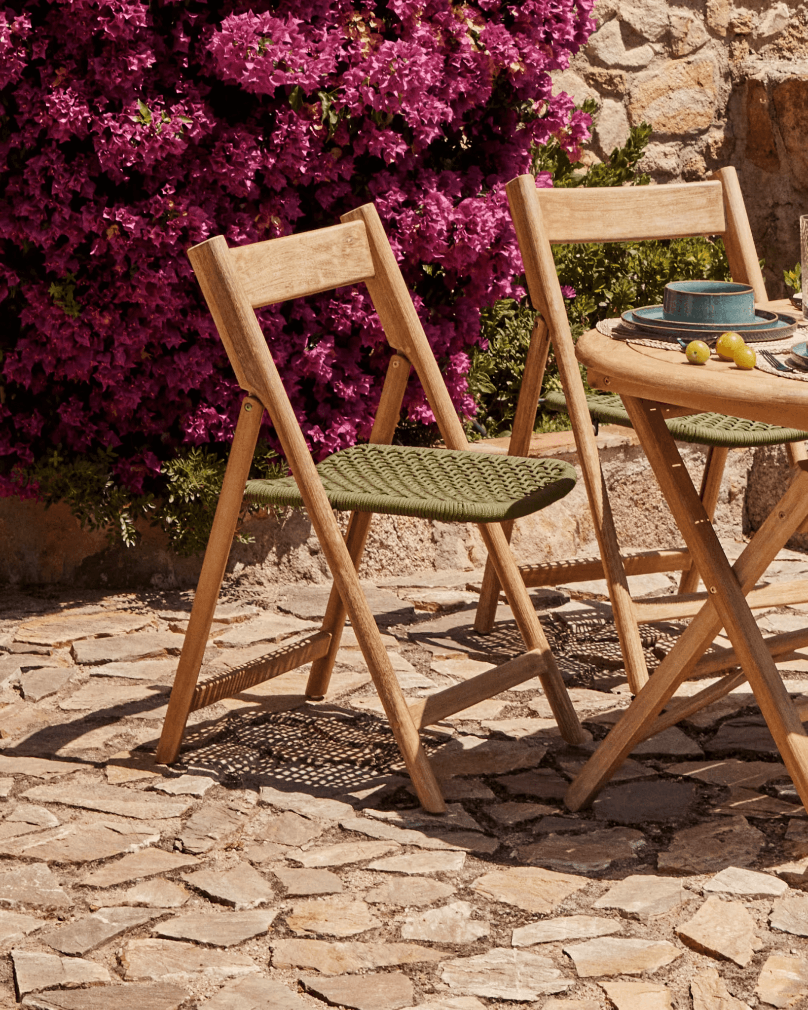 Odkryj wyjątkową wygodę i estetykę dzięki krzesłu Dandara, idealnemu rozwiązaniu dla małych przestrzeni na zewnątrz, takich jak balkony. Wykonane z litego drewna akacjowego, te składane krzesła doskonale komponują się z otoczeniem, umożliwiając Ci cieszenie się promieniami słońca w wyjątkowym komforcie.
