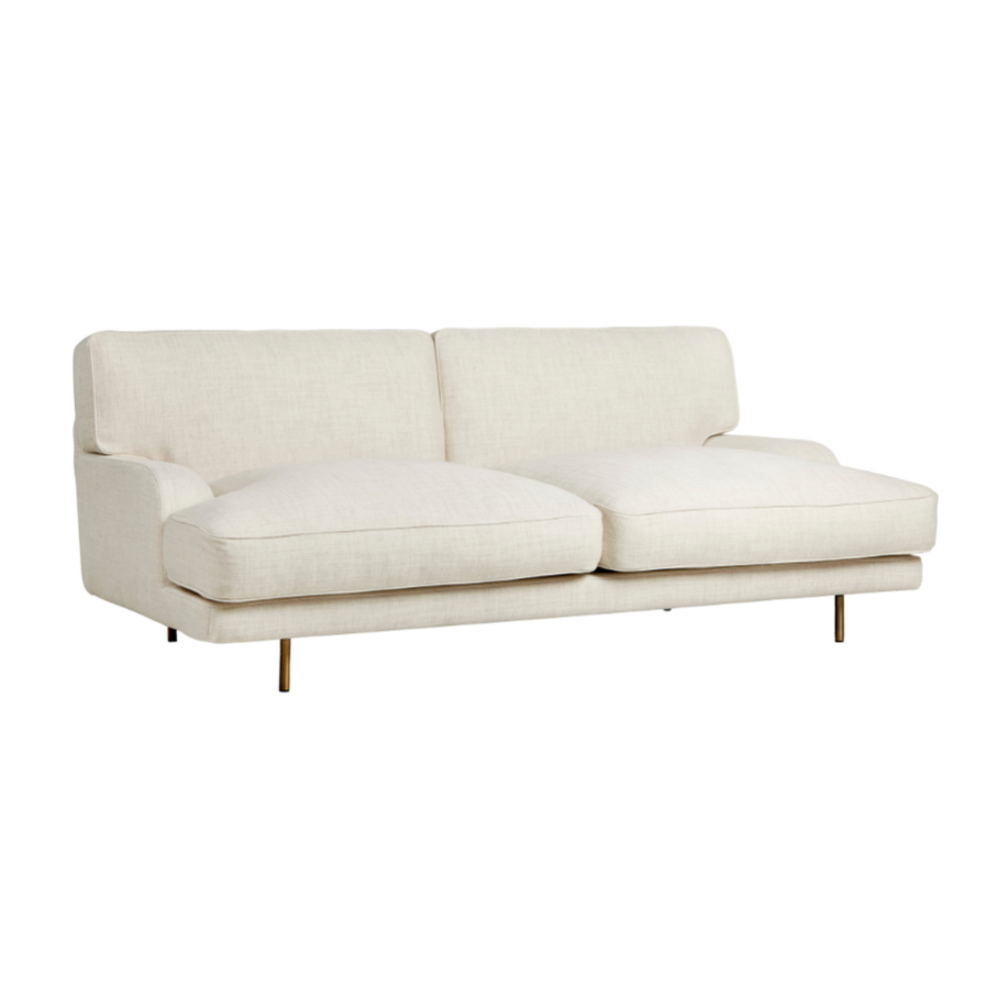 Sofa 2-zits FLANEUR gestoffeerd met een messing basis