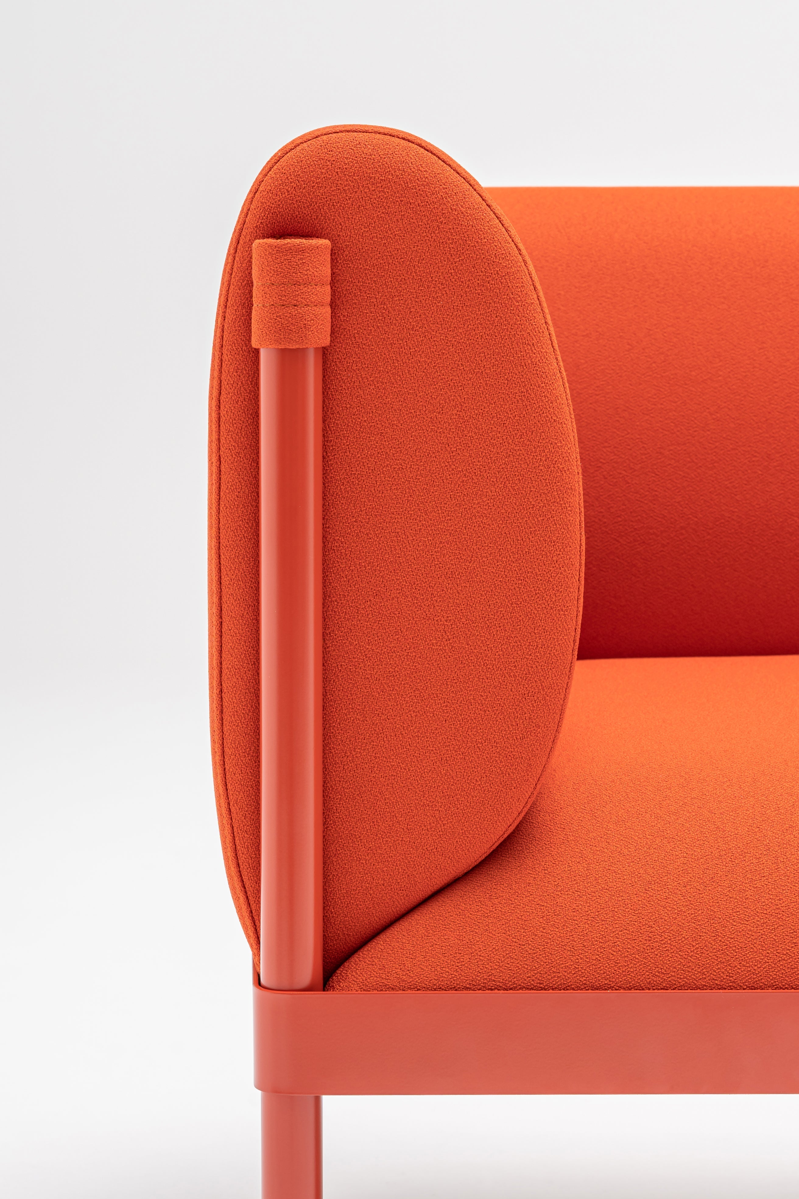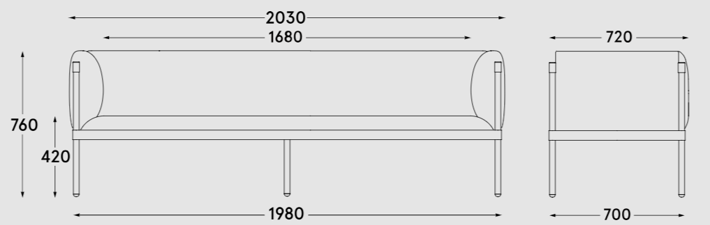 Konstrukcja oparta na solidnych płytach wiórowych stabilizuje oparcie i podłokietniki, które tworzą półprywatną strefę dla siedzących. Wysokie nóżki nie tylko ułatwiają siadanie i wstawanie, ale również chronią podłogę przed zarysowaniami dzięki plastikowym stopkom. Eleganckie wykończenie tylnej części sofy pozwala na jej ustawienie w centralnych punktach pomieszczenia, nadając przestrzeni nowoczesny charakter.