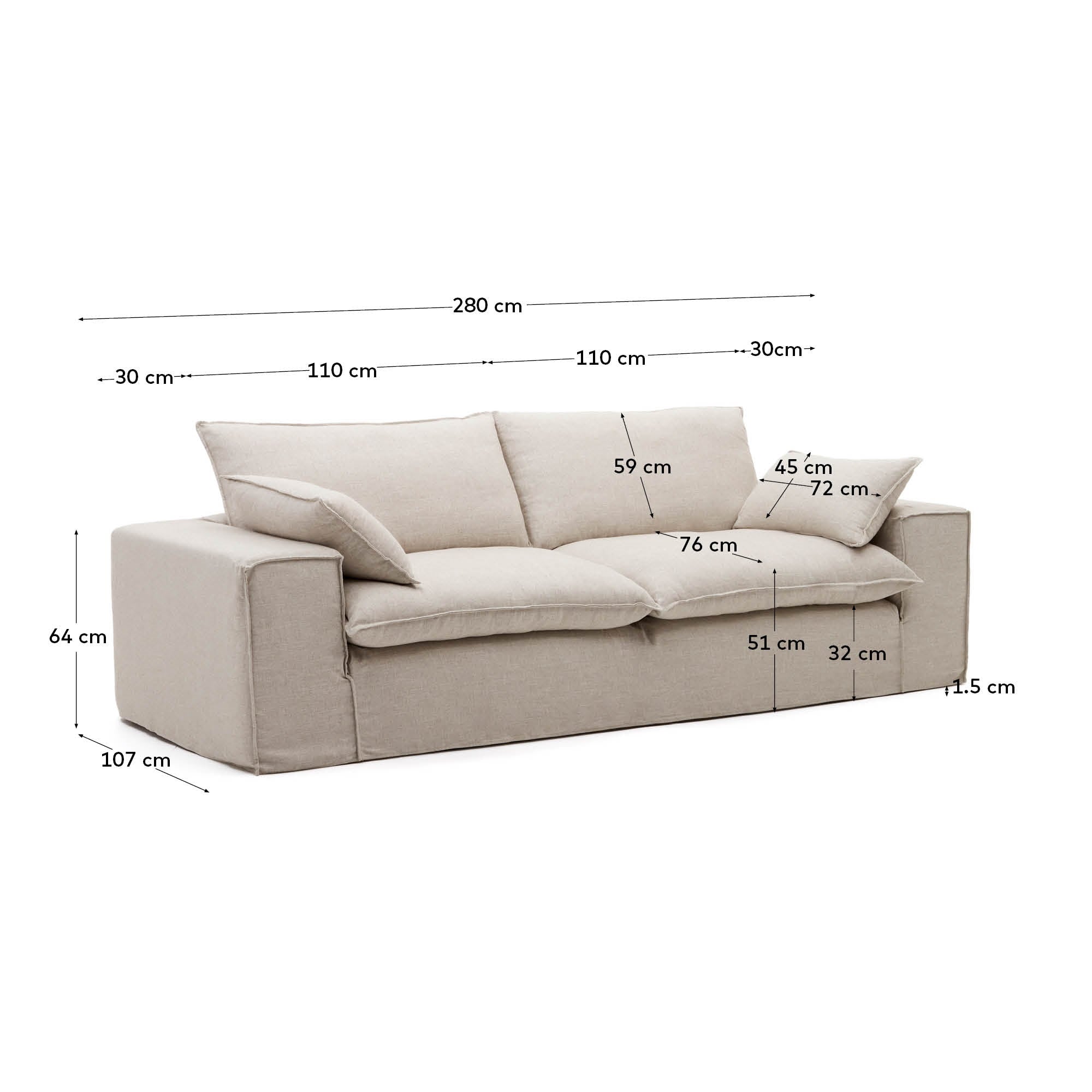 Sofa 3-zits met afneembare hoes ANARELA beige
