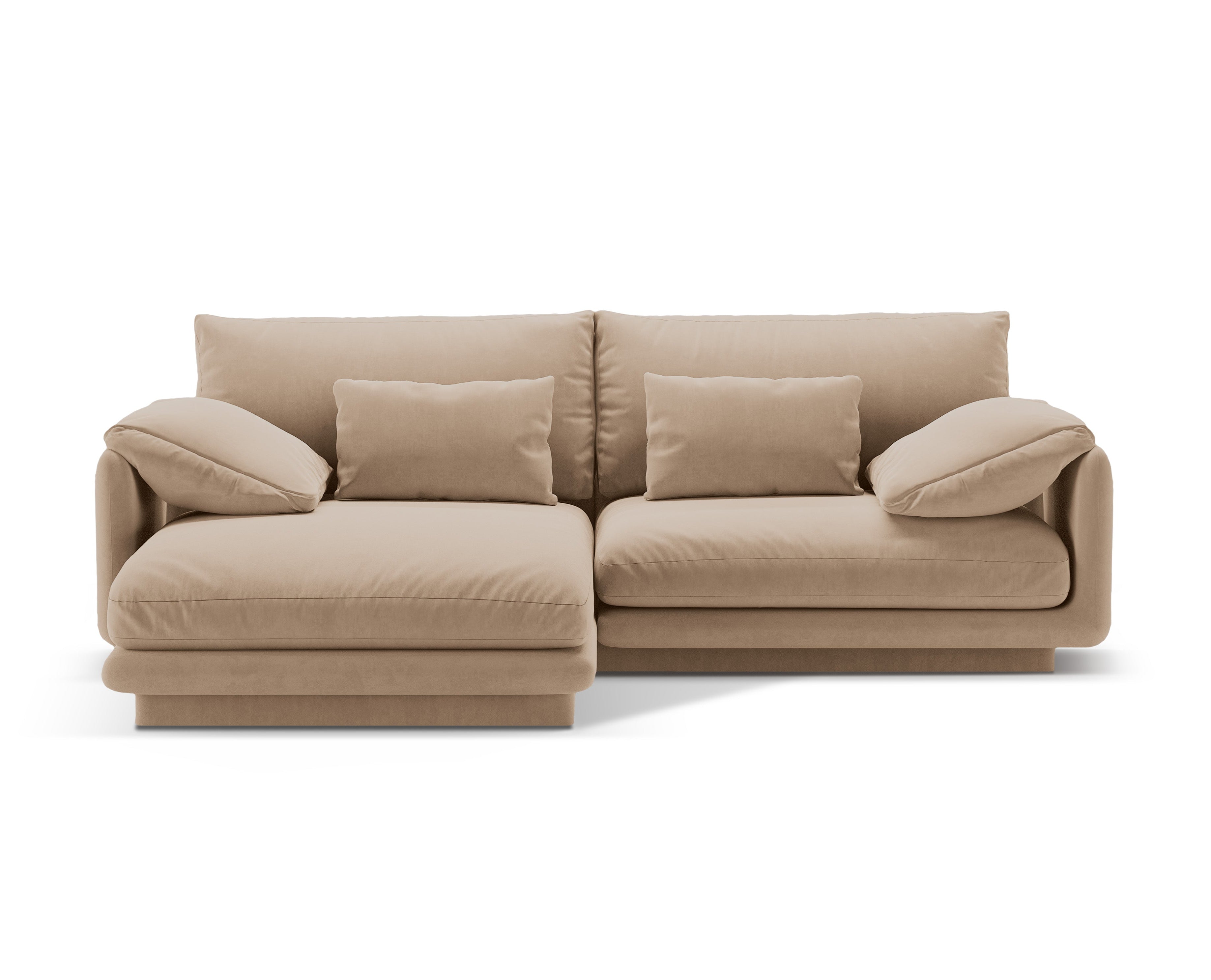 Tweedelige fluwelen hoekbank voor 3 personen, links TORINO zandkleurig