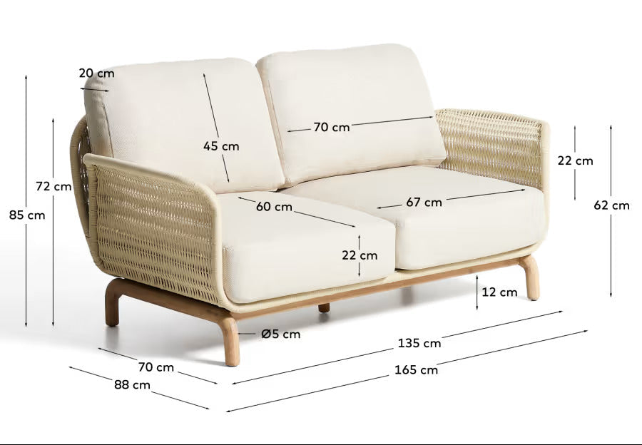 De zitting, gemaakt van handgeweven touw dat bestand is tegen UV-straling, en de zachte kussens met afneembare hoezen, zorgen ervoor dat de tu bank een hoog comfort biedt voor dagelijks gebruik. Duurzame materialen en een solide afwerking garanderen dat de tu bank met kussens zijn esthetische uitstraling lange tijd behoudt, zelfs bij intensief gebruik. Dit is de ideale keuze voor mensen die functionaliteit, comfort en een natuurlijke stijl waarderen in de inrichting van hun ontspanningsruimte.