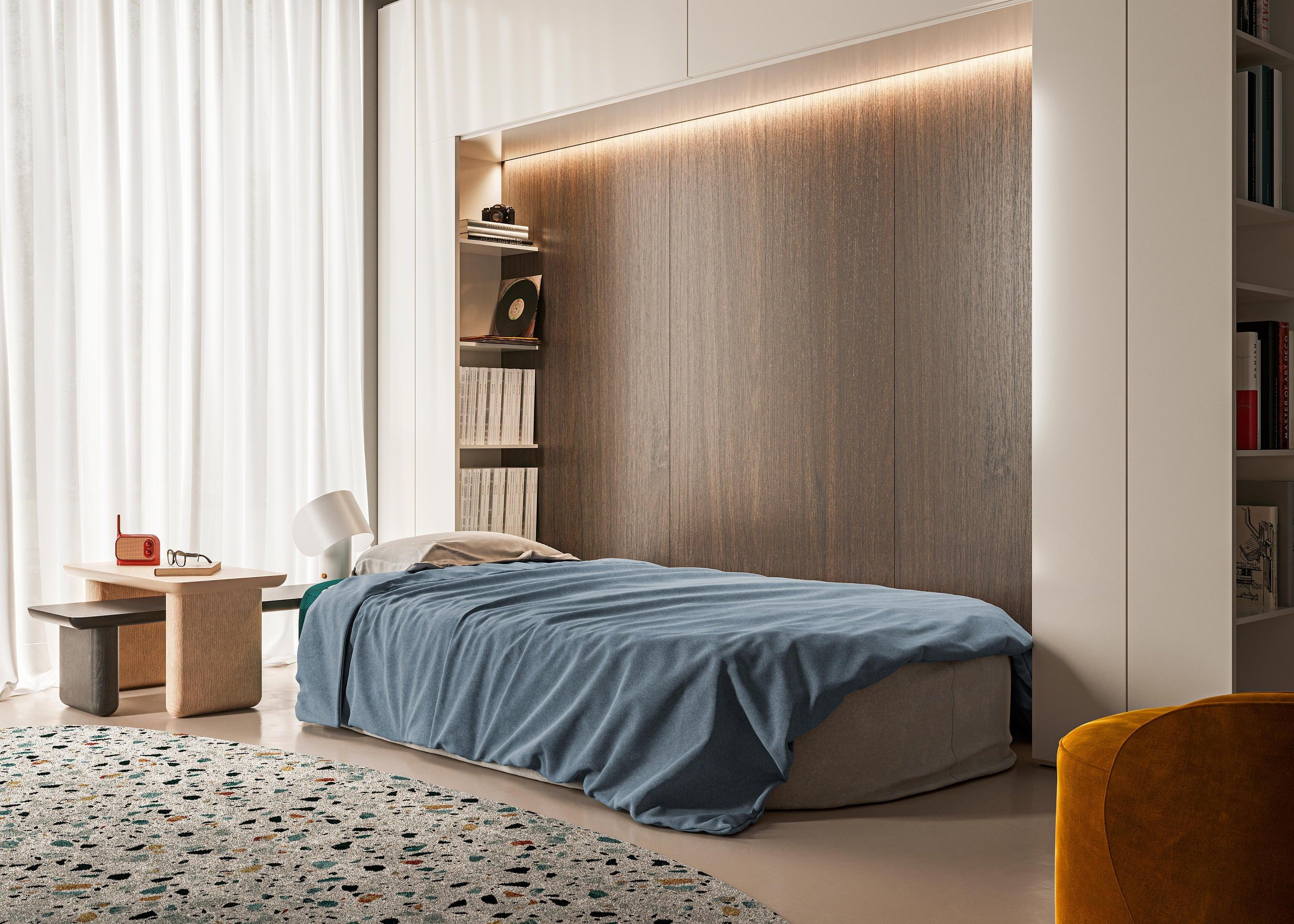 In de set zitten twee speciale kussens, die een echte geheim verbergen - een bedset. Dit op maat gemaakte laken, kussensloop en lichte dekbed maken het mogelijk om Soft Island in een mum van tijd in een comfortabel bed te veranderen. Alles wat u nodig heeft, is binnen handbereik, zorgvuldig opgeborgen en georganiseerd.