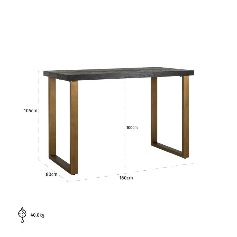 Niezwykły stół barowy Blackbone emanuje ponadczasowym wdziękiem. Jego prostokątny blat wykonany z czarnego, szlachetnego dębu, pięknie ułożony w charakterystyczny wzór jodełki, spoczywa na solidnej mosiężnej podstawie. Ta subtelna elegancja sprawia, że stół barowy staje się nieodzownym elementem każdej jadalni.
