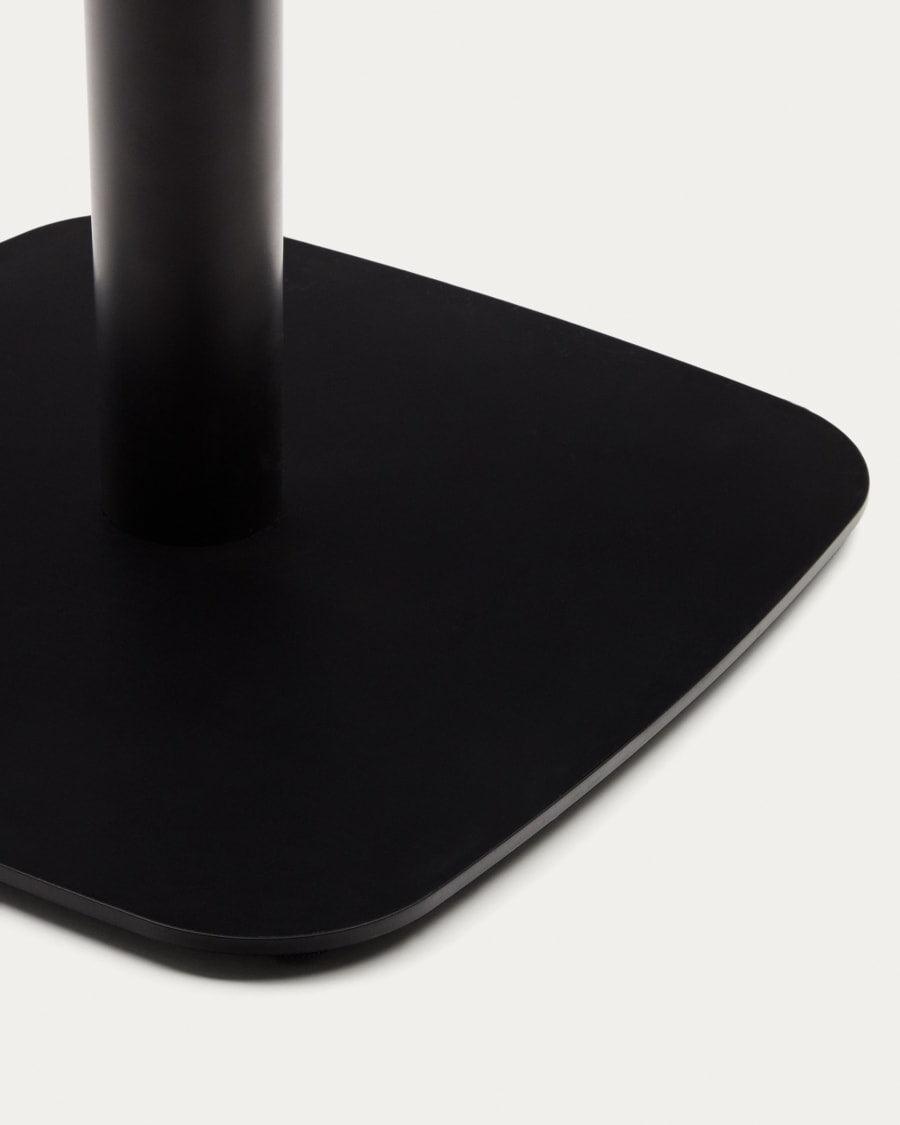 Het blad van de Dina tafel kenmerkt zich door zijn duurzaamheid en onderhoudsgemak, dankzij het gebruik van melamine die perfect het uiterlijk van notenhout nabootst, terwijl het tegelijkertijd gemakkelijker te onderhouden is. Het onderstel van de bartafel met een metalen basis garandeert stabiliteit en duurzaamheid, waardoor het meubel stevig en praktisch in gebruik is.
