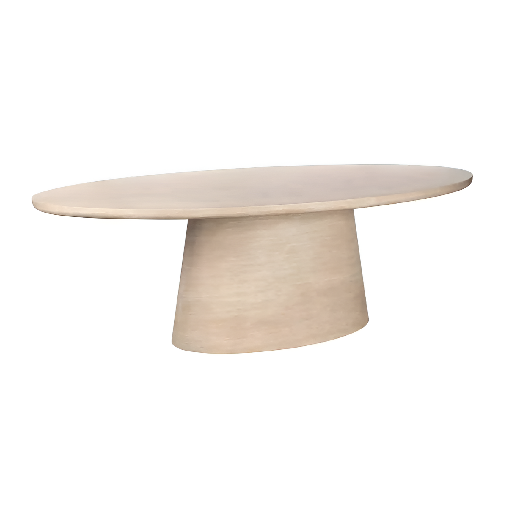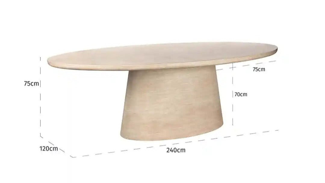 De tafel kenmerkt zich door een stabiele constructie en een massieve basis, wat zorgt voor duurzaamheid en een uitzonderlijk visueel effect. De subtiele kleurstelling en het design vormen zorgen ervoor dat het perfect samengaat met moderne, minimalistische en elegante inrichtingen. Dit is een meubelstuk dat het middelpunt van elke eetkamer zal worden.