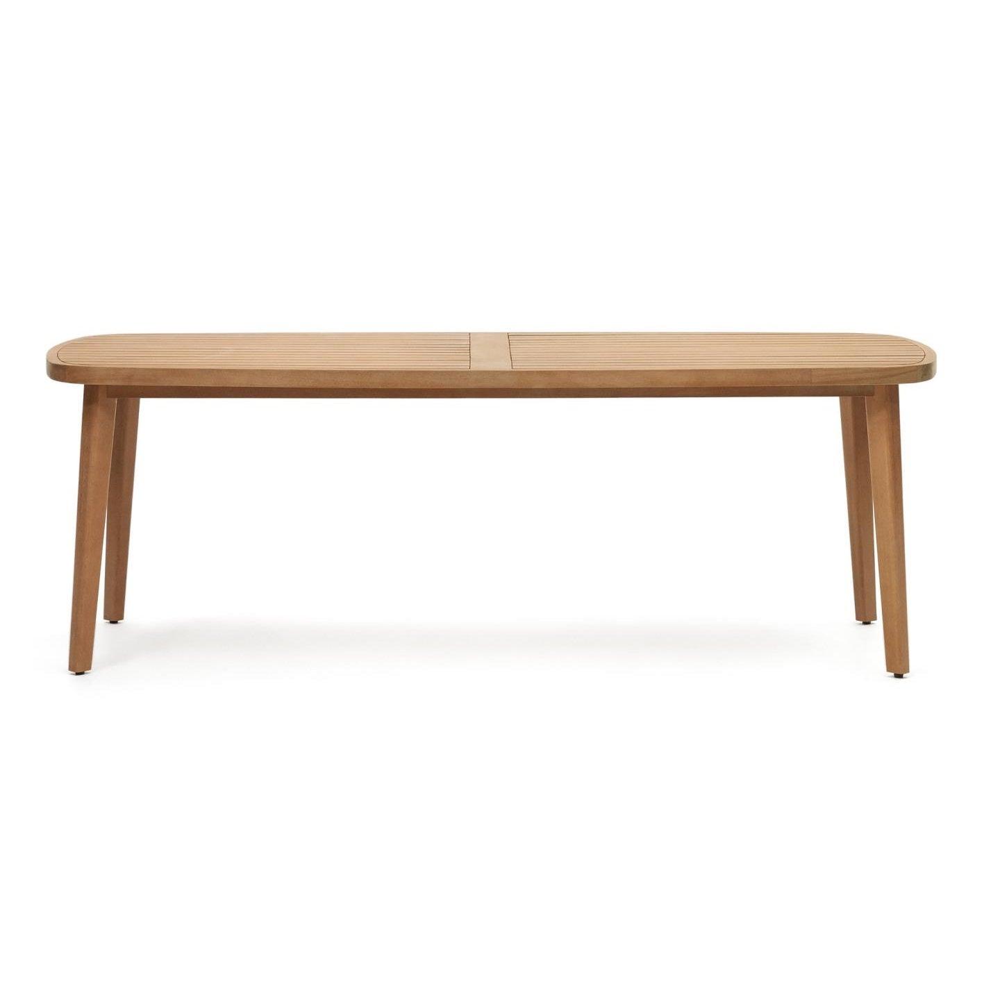 Zaokrąglone kształty są modne: stwórz swoją jadalnię na świeżym powietrzu ze stołem Maset, przy którym każdy bedzie miał swoje miejsce do jedzenia. Wszechstronność jest jego mocną stroną, wykonany z litego drewna eukaliptusowego łączy się z wszelkimi stylami aranżacyjnymi.