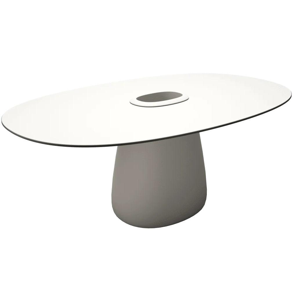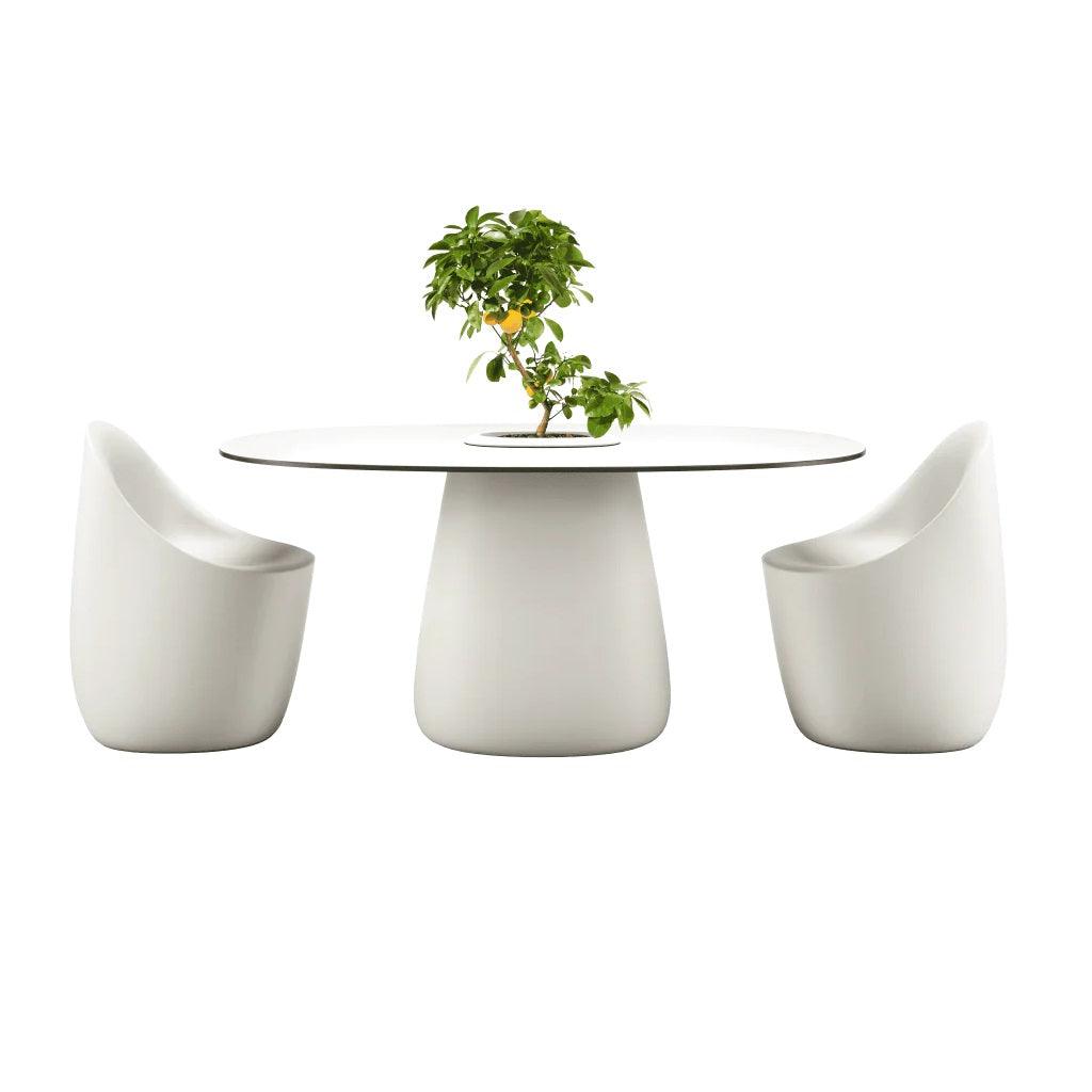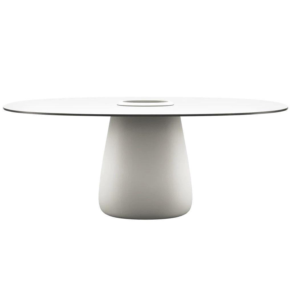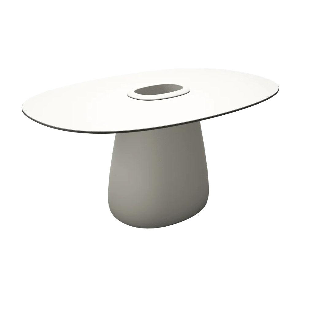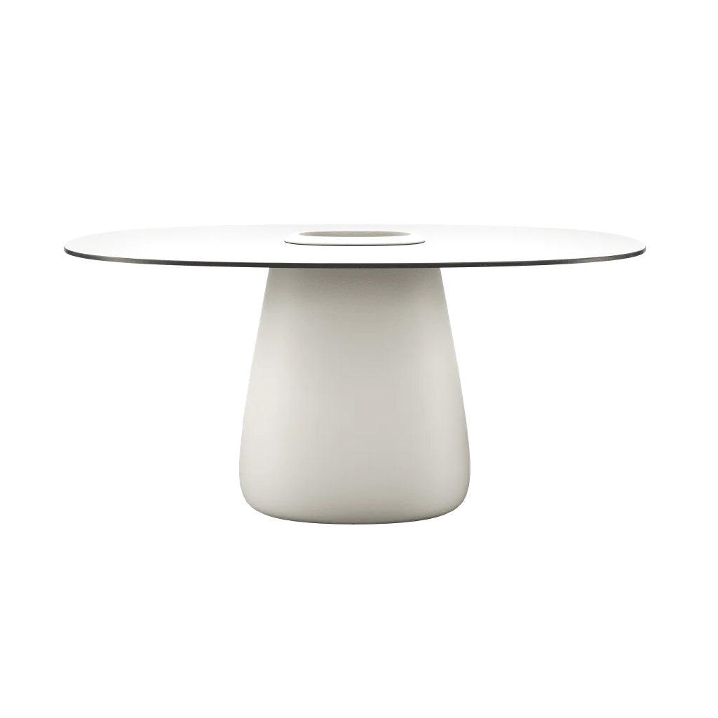 De bestratings tafel, ontworpen door Elisa Giovannoni, heeft een centrale basis waarin een emmer met planten of ijs kan worden geplaatst om de flessen koel te houden. Het dunne tafelblad is gemaakt van materialen die geschikt zijn voor zowel binnen- als buitengebruik, zoals hpl (in volle kleur of zwart gelaagd) in combinatie met verschillende kleuren. Verkrijgbaar met een tafelblad met een diameter van 160.