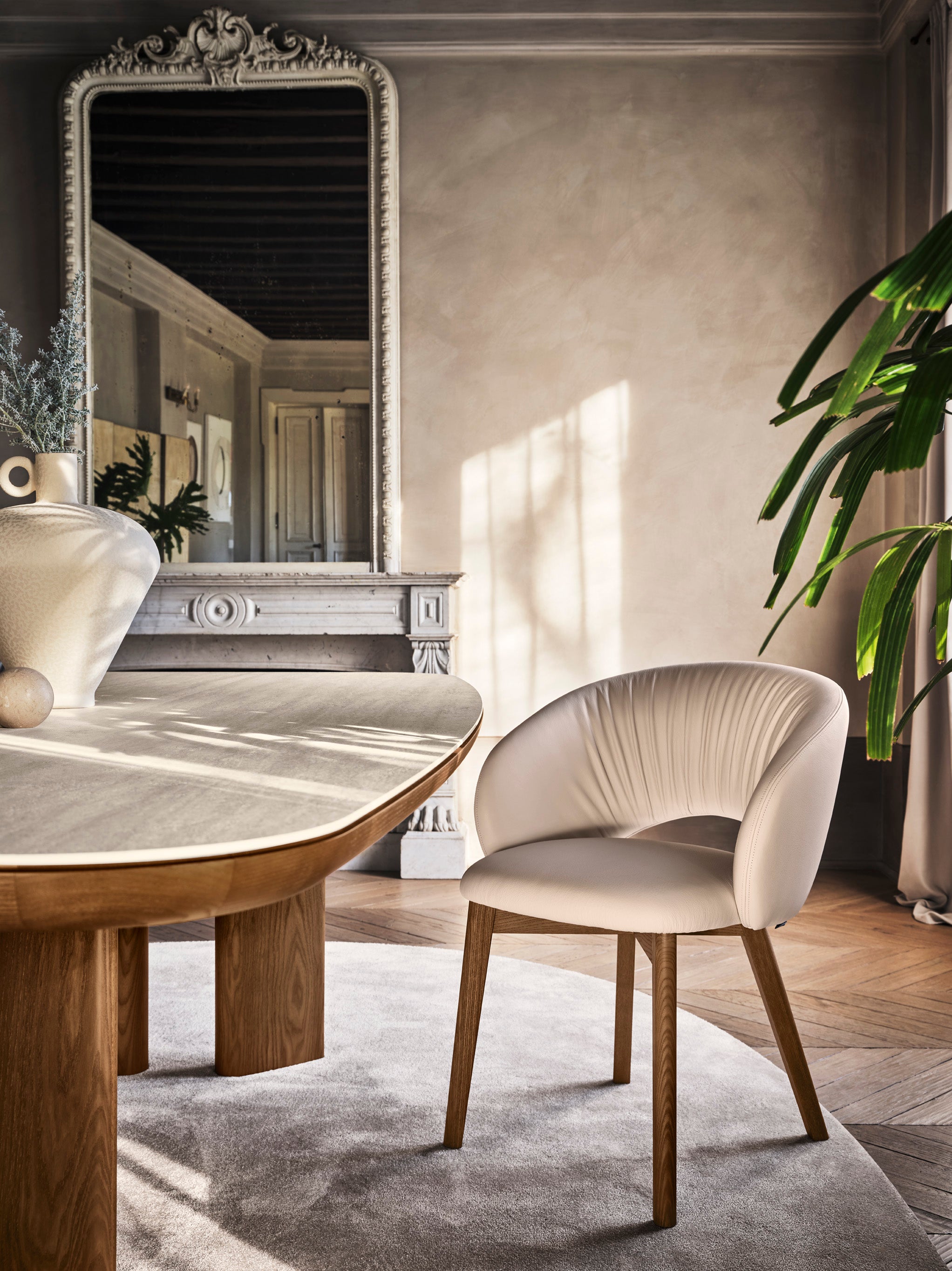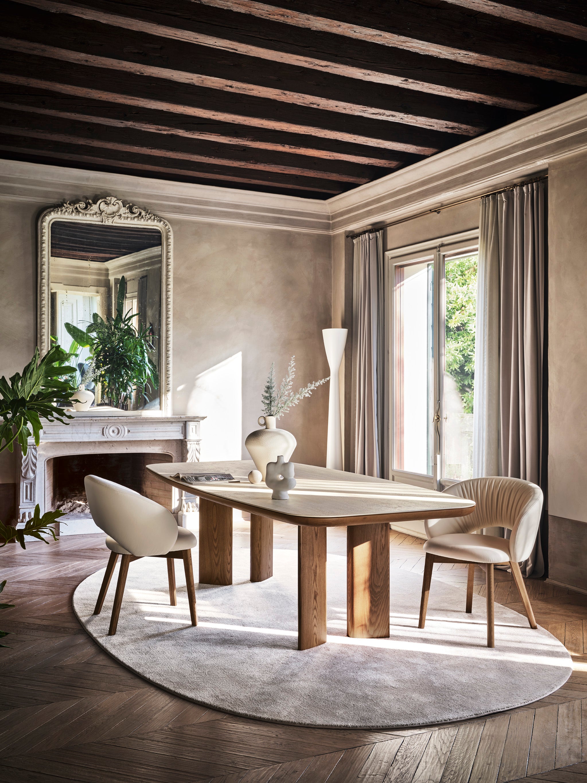 De gebalanceerde silhouette van de tafel Sandy combineert de moed van het ontwerp met visuele lichtheid, waardoor het perfect past in verschillende eet- of woonkamerinrichtingen. Het grote blad bevordert samen tijd doorbrengen, en het universele ontwerp zorgt ervoor dat de tafel harmonieus samengaat met vele modellen stoelen, wat een samenhangende en elegante ruimte creëert.