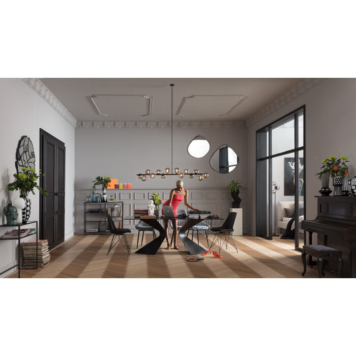 Luksusowy wygląd i wyrafinowanie - odrobina glamour jeszcze nikomu nie zaszkodziła! Stół do jadalni Glora to nowoczesne dzieło sztuki meblowej, które przyciąga wzrok. Imponuje kreatywną finezją i eleganckim, lekko ekscentrycznym akcentem. Blat stołu wykonany jest z grubego szkła hartowanego, podtrzymywanego przez dwie artystycznie ukształtowane nogi. Stół doskonale nadaje się do wnętrz o charakterze glamour i eklektycznym, dodając im nuty hollywoodzkiego stylu. Gloria wprowadzi gwiazdorski charakter do Twojego wnętrza.