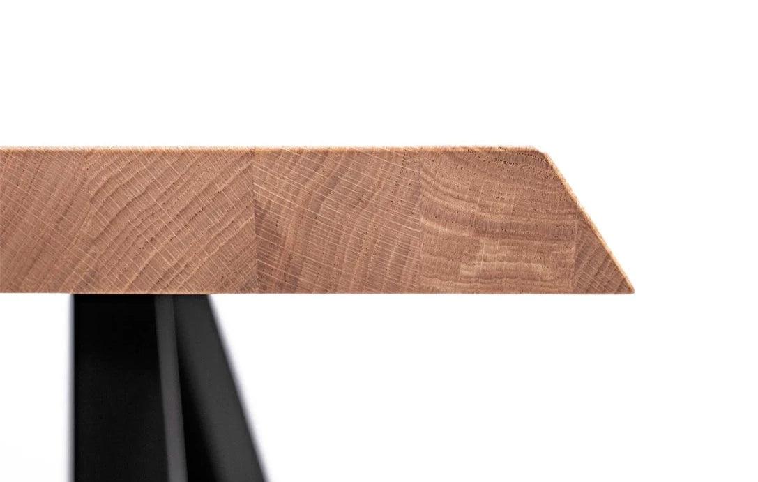Blat stołu, wykonany z litego drewna dębowego, został pokryty naturalnym olejem, co subtelnie podkreśla jego naturalne piękno i trwałość. Dębowe drewno nie tylko dodaje funkcjonalności, ale także emanuje szlachetnością, sprawiając, że drewniany stół Tame staje się nie tylko praktycznym meblem, ale również estetycznym dziełem sztuki.