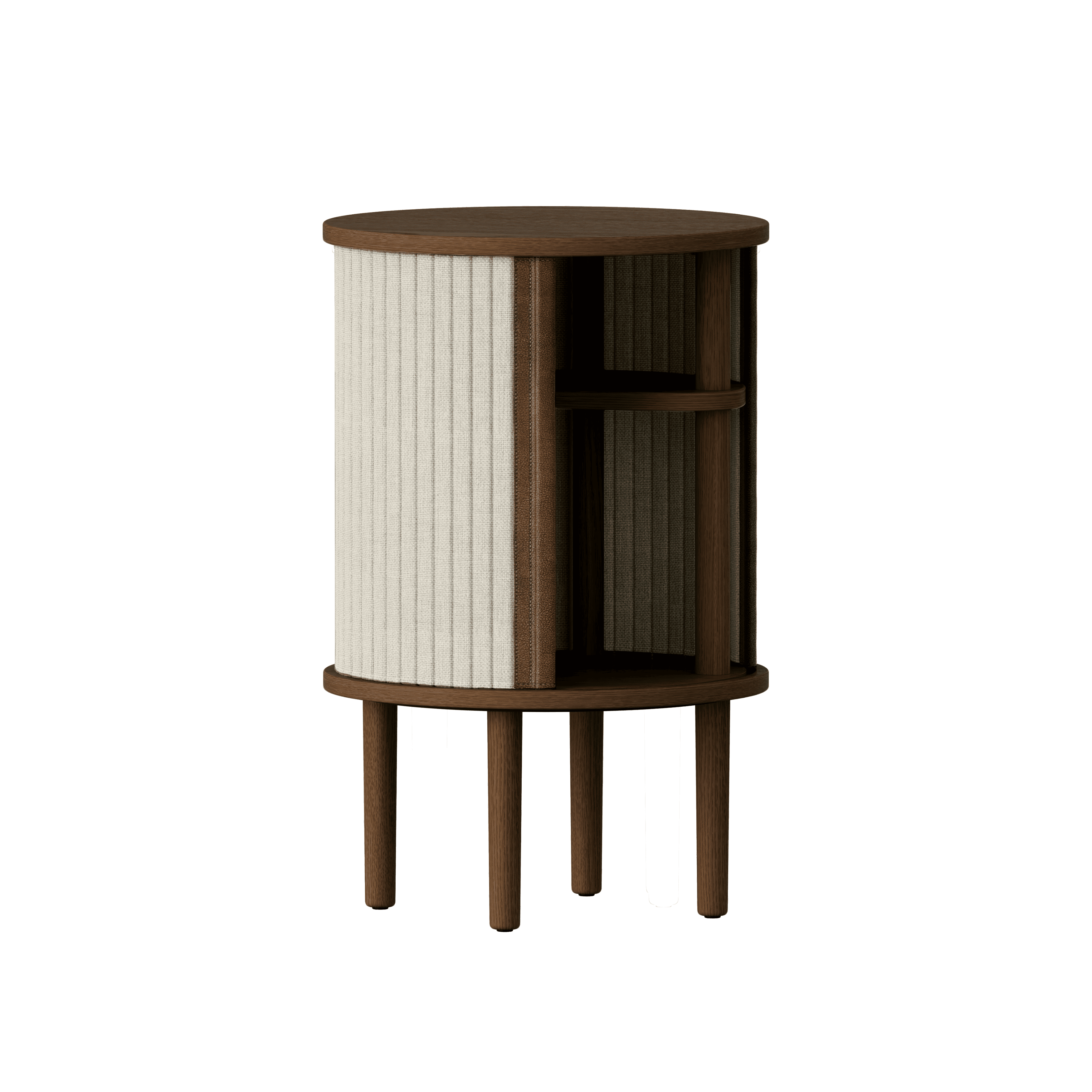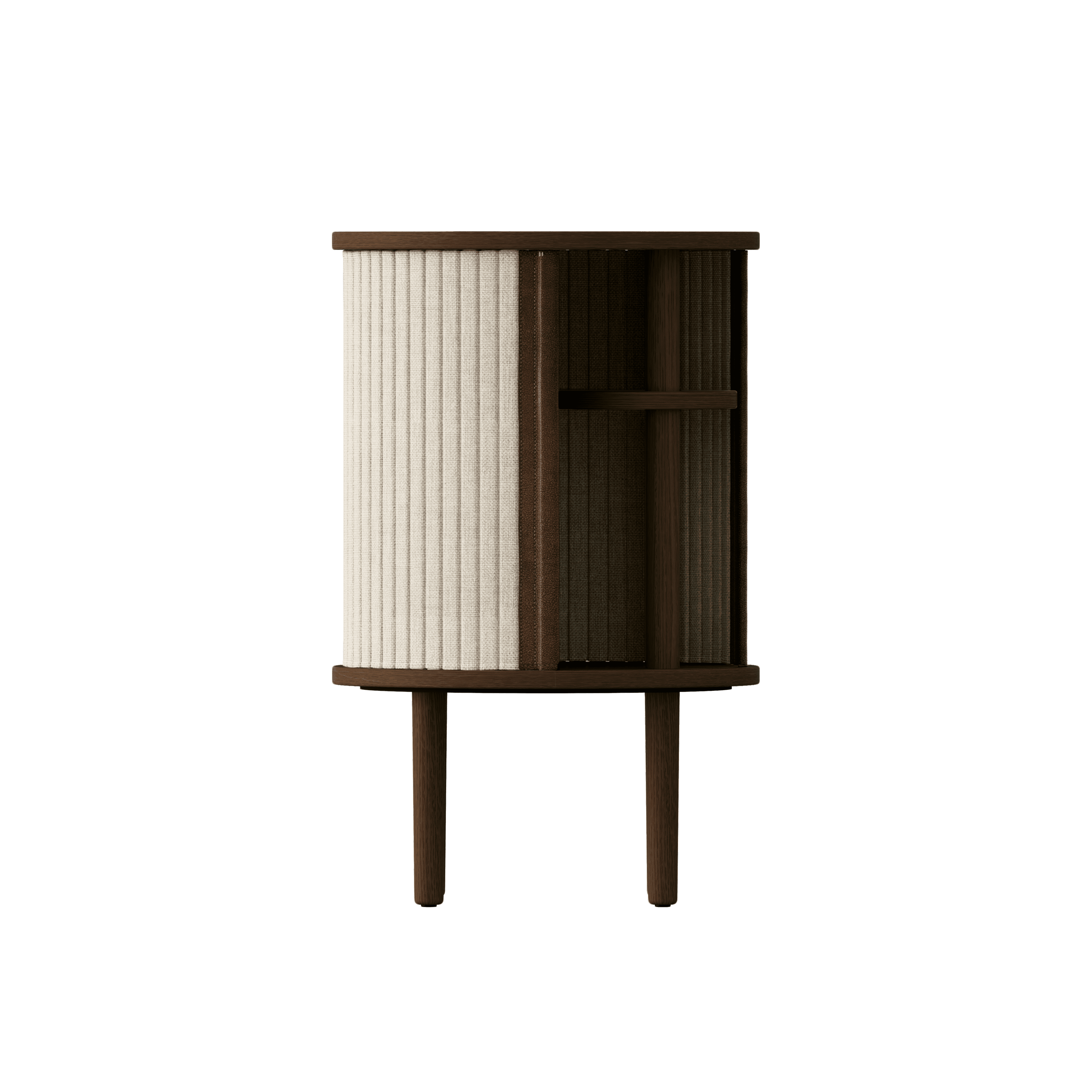 Beschikbaar in drie kleuren: natuurlijk eiken, donker eiken en zwart eiken, met jaloezieën in vier zorgvuldig geselecteerde kleuren van de stof Horizons, die voor 100% uit gerecycled materiaal bestaat. De jaloezieën zijn verwisselbaar, wat betekent dat u ze eenvoudig zelf kunt vervangen, waardoor u nieuw leven in uw ontwerp kunt blazen zonder een geheel nieuw meubelstuk aan te schaffen, wat tegelijkertijd bijdraagt aan het besparen van wereldwijde hulpbronnen.