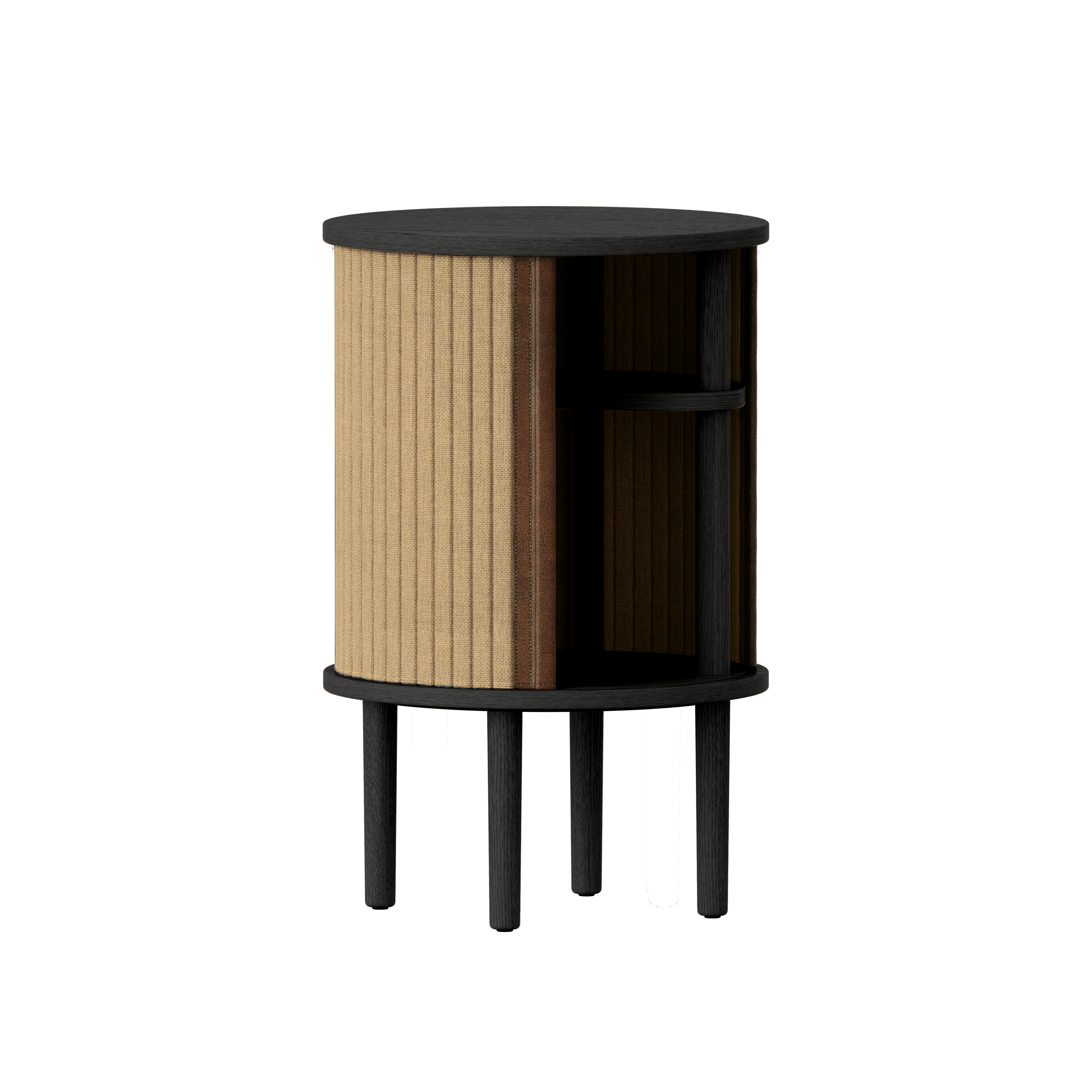Beschikbaar in drie kleuren: natuurlijk eiken, donker eiken en zwart eiken, met jaloezieën in vier zorgvuldig geselecteerde kleuren van de stof Horizons, die voor 100% uit gerecycled materiaal bestaat. De jaloezieën zijn verwisselbaar, wat betekent dat u ze eenvoudig zelf kunt vervangen, waardoor u nieuw leven in uw ontwerp kunt blazen zonder een geheel nieuw meubelstuk aan te schaffen, wat tegelijkertijd bijdraagt aan het besparen van wereldwijde hulpbronnen.