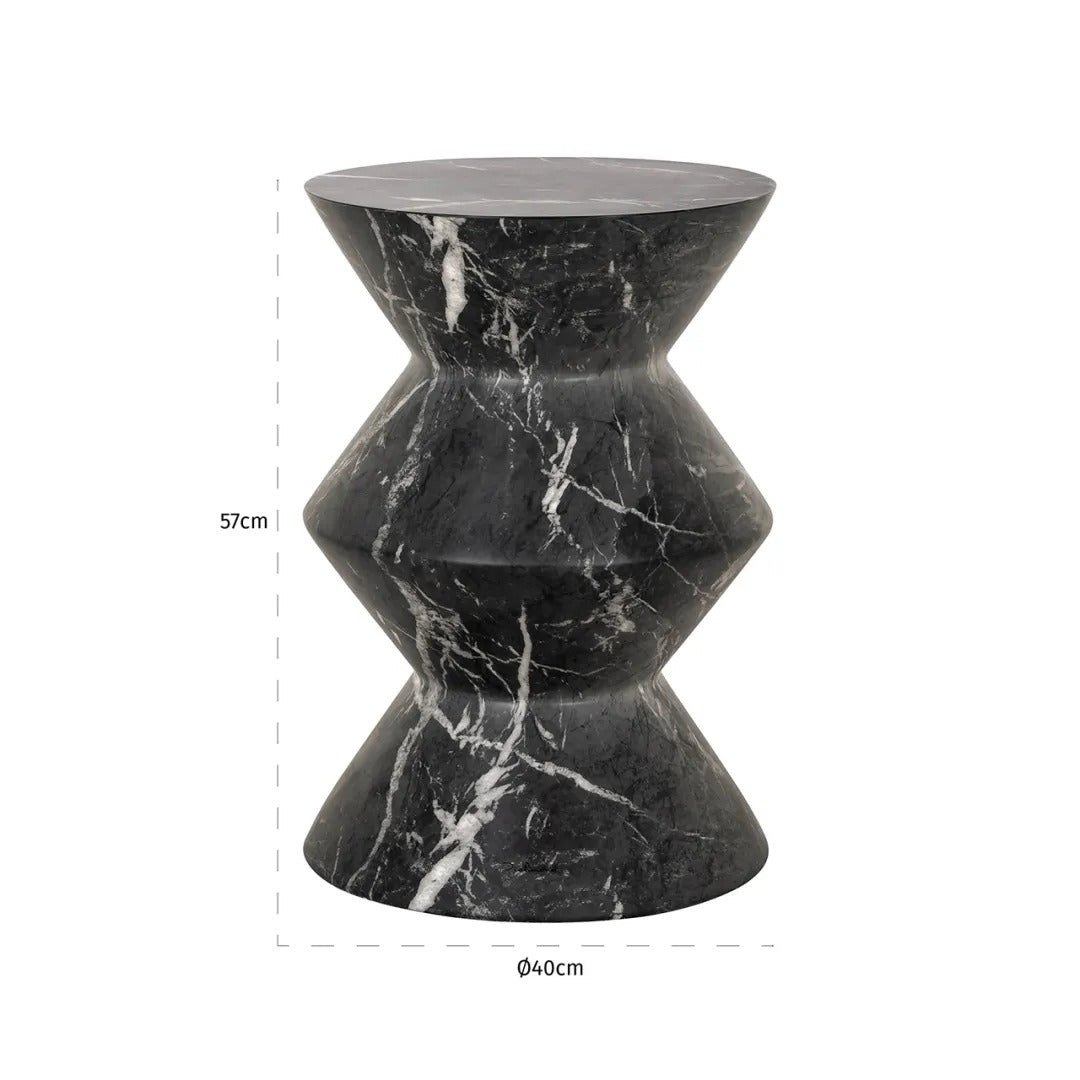 Designer tafel Bosco met een sculpturale vorm trekt de aandacht met zijn unieke ontwerp en elegante afwerking. De imitatie van zwart marmer met subtiele adering geeft het een luxe uitstraling, terwijl de geometrische vorm ervoor zorgt dat het meubel zowel een praktische als decoratieve functie kan vervullen. Het is perfect als bijzettafel, nachttafeltje of als een exposant in een modern interieur.