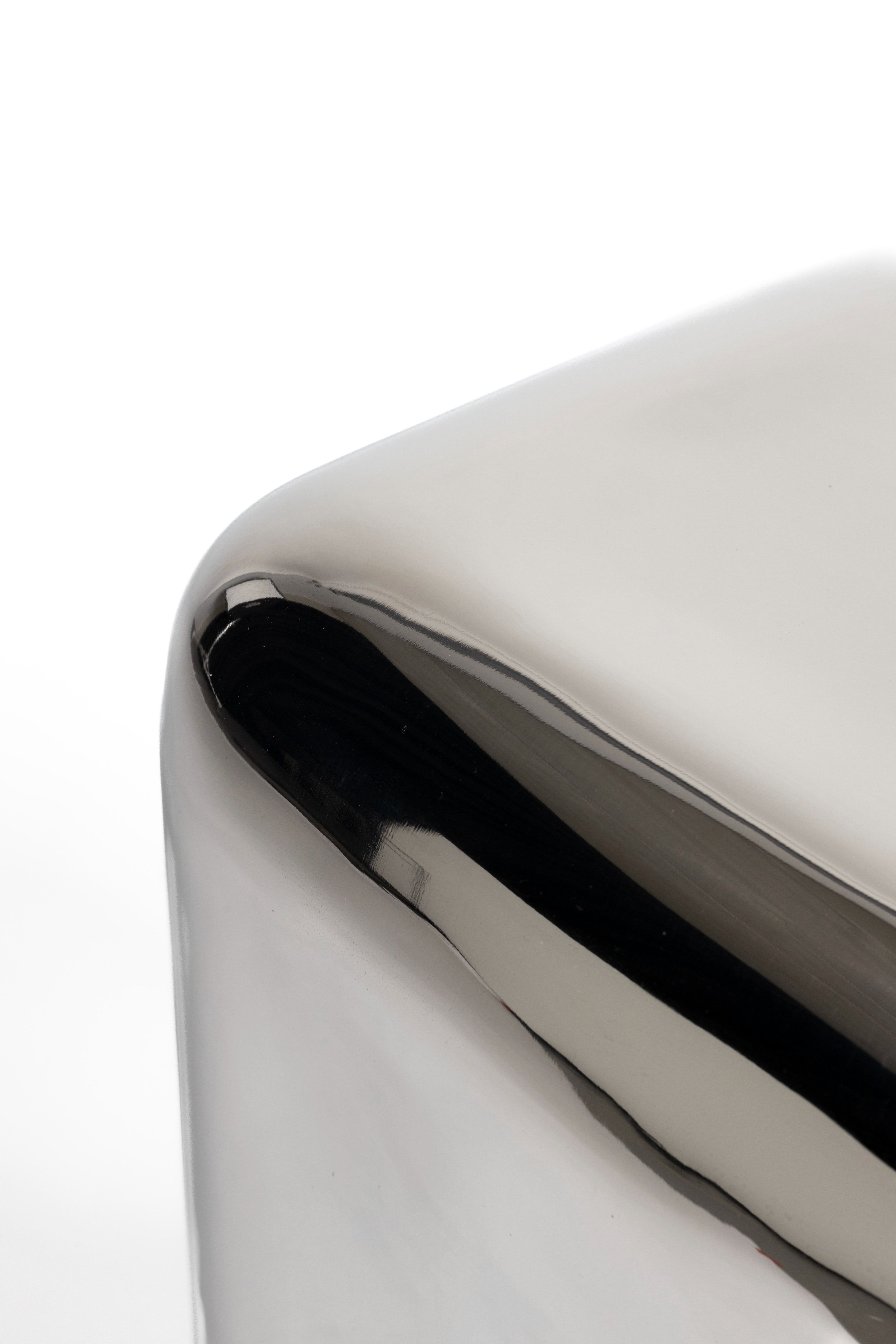 De zilveren afwerking geeft de tafel een moderne, enigszins industriële uitstraling, die zowel in minimalistische als eclectische interieurs perfect tot zijn recht komt. De compacte afmetingen maken het een ideale bijzettafel naast de bank, een handige tafel in de slaapkamer of een decoratief element in de hal.