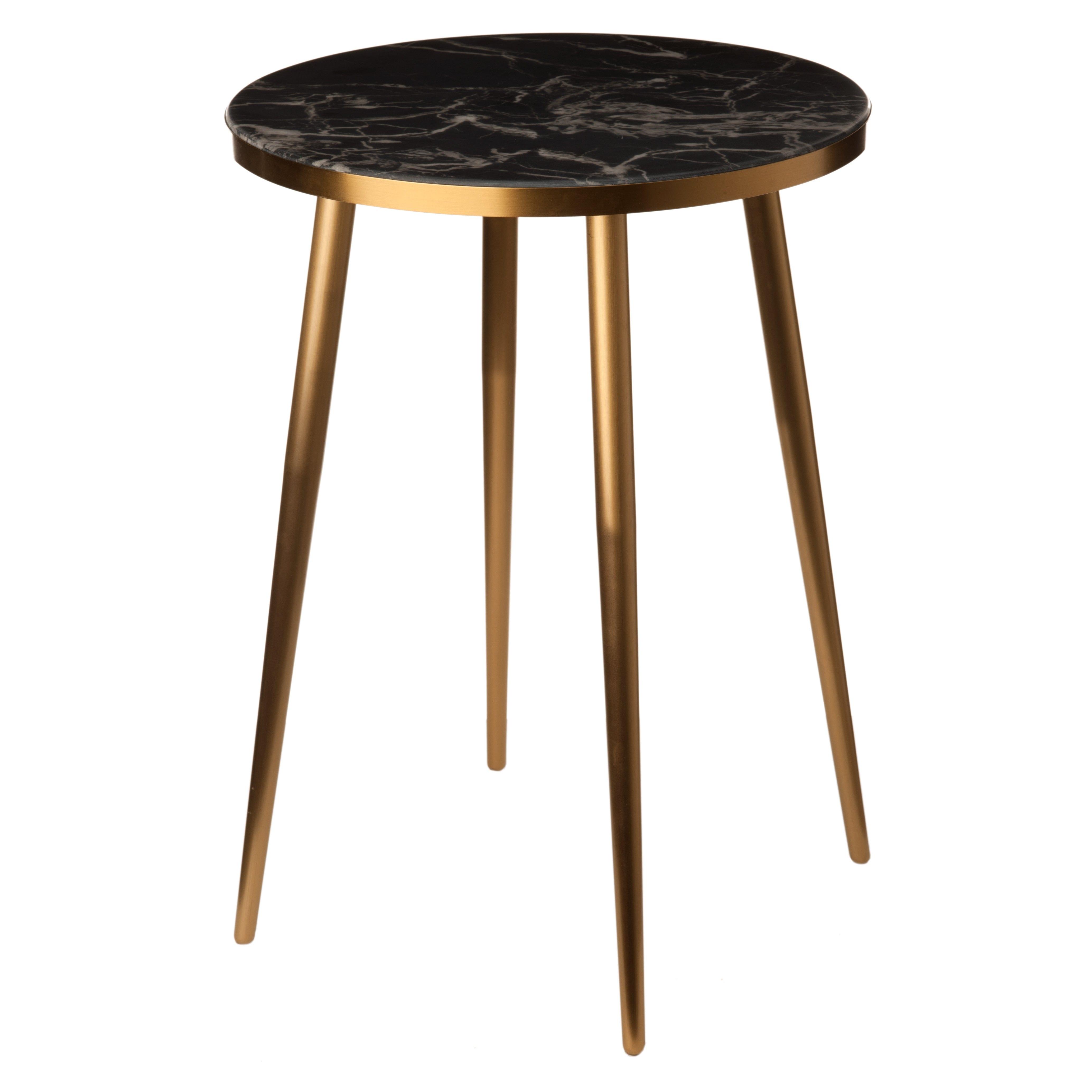 De combinatie van zwart en klassiek goud geeft de tafel een chique uitstraling, terwijl de relatief kleine afmetingen ervoor zorgen dat de tafel bijna in elke ruimte past. De marmerlook geeft het oppervlak een uitstekende uitstraling, en het frame van roestvrij staal in geborsteld goud zorgt ervoor dat de tafel stevig en duurzaam is.