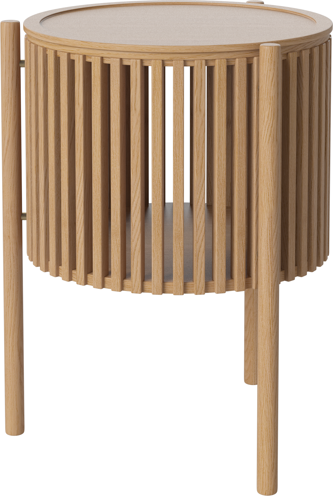Bijzettafel Story is een uniek element uit de serie elegante, handgemaakte bijzettafels, ontworpen door het Deense duo Anna Karnov en Clara Mahler. Elke tafel kenmerkt zich door een opvallende, lichte voorkant, gevormd door delicate houten kolommen, die het een unieke, ruimtelijke uitstraling geven. Het transparante ontwerp maakt het mogelijk om favoriete voorwerpen tentoon te stellen of ze subtiel te verbergen achter de open constructie.