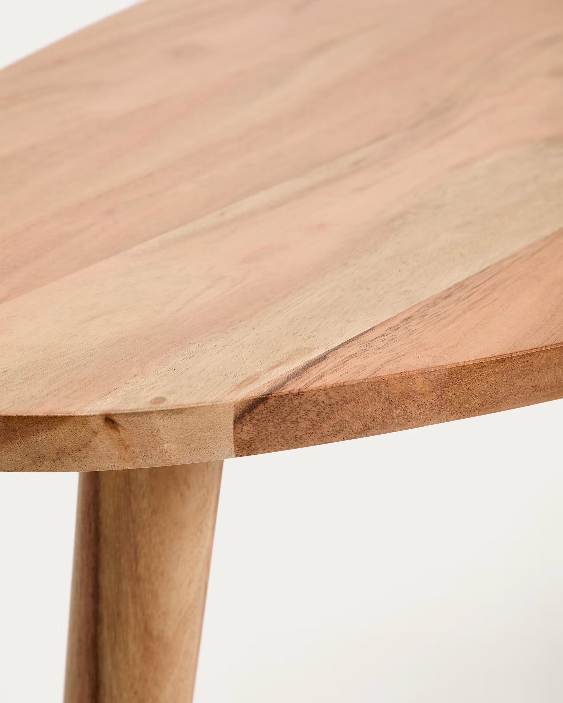 Bijzondere salontafel Duvani van massief acaciahout met een gebleekte afwerking is een elegante en tijdloze meubelstuk dat perfect past in interieurs geïnspireerd door de Scandinavische stijl en modern minimalisme. Zijn subtiele vorm en evenwichtige verhoudingen brengen harmonie en lichtheid in de ruimte, terwijl ze tegelijkertijd natuurlijke warmte en gezelligheid toevoegen.