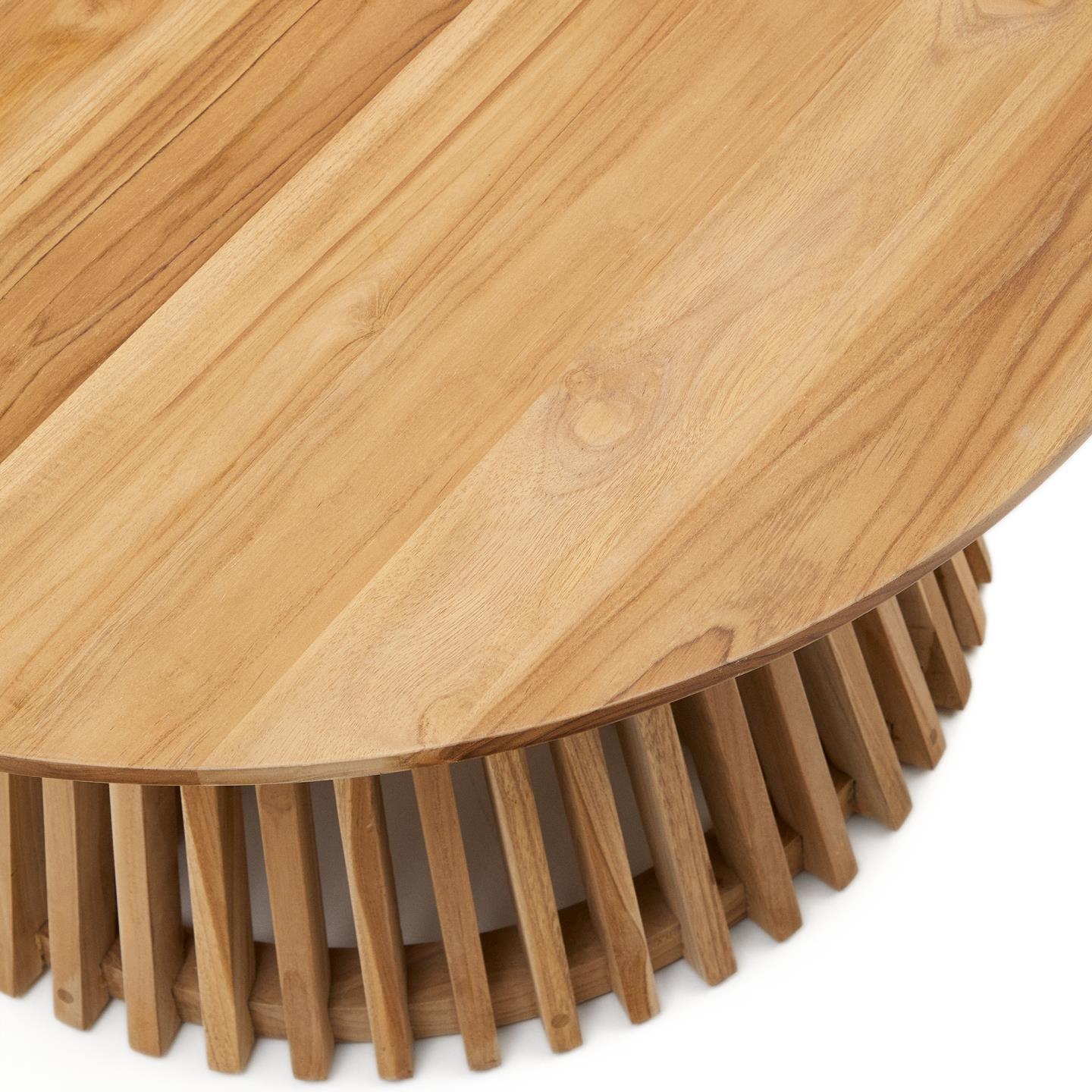 Koffietafel Jeanette is een unieke tafel gemaakt van massief teakhout, die harmonie van natuurlijke schoonheid en soliditeit in uw interieur brengt. Deze elegante koffietafel verrast met zijn zorgvuldige afwerking en unieke houtstructuur, waardoor elk exemplaar uniek is. Door het gebruik van teak, dat bekend staat om zijn weerstand tegen vocht en micro-organismen, combineert de tafel esthetiek met duurzaamheid, waardoor het een functioneel element wordt voor dagelijks gebruik.