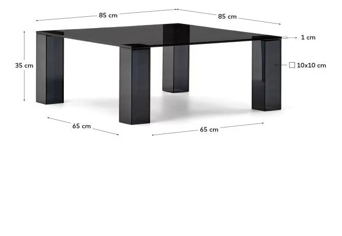 Vierkante salontafel Adularia is een moderne accent in donkergrijs gehard glas, die elegantie toevoegt aan elk interieur. Het innovatieve ontwerp met onzichtbare verbindingen tussen het blad en de poten geeft een gevoel van lichtheid en stijl.