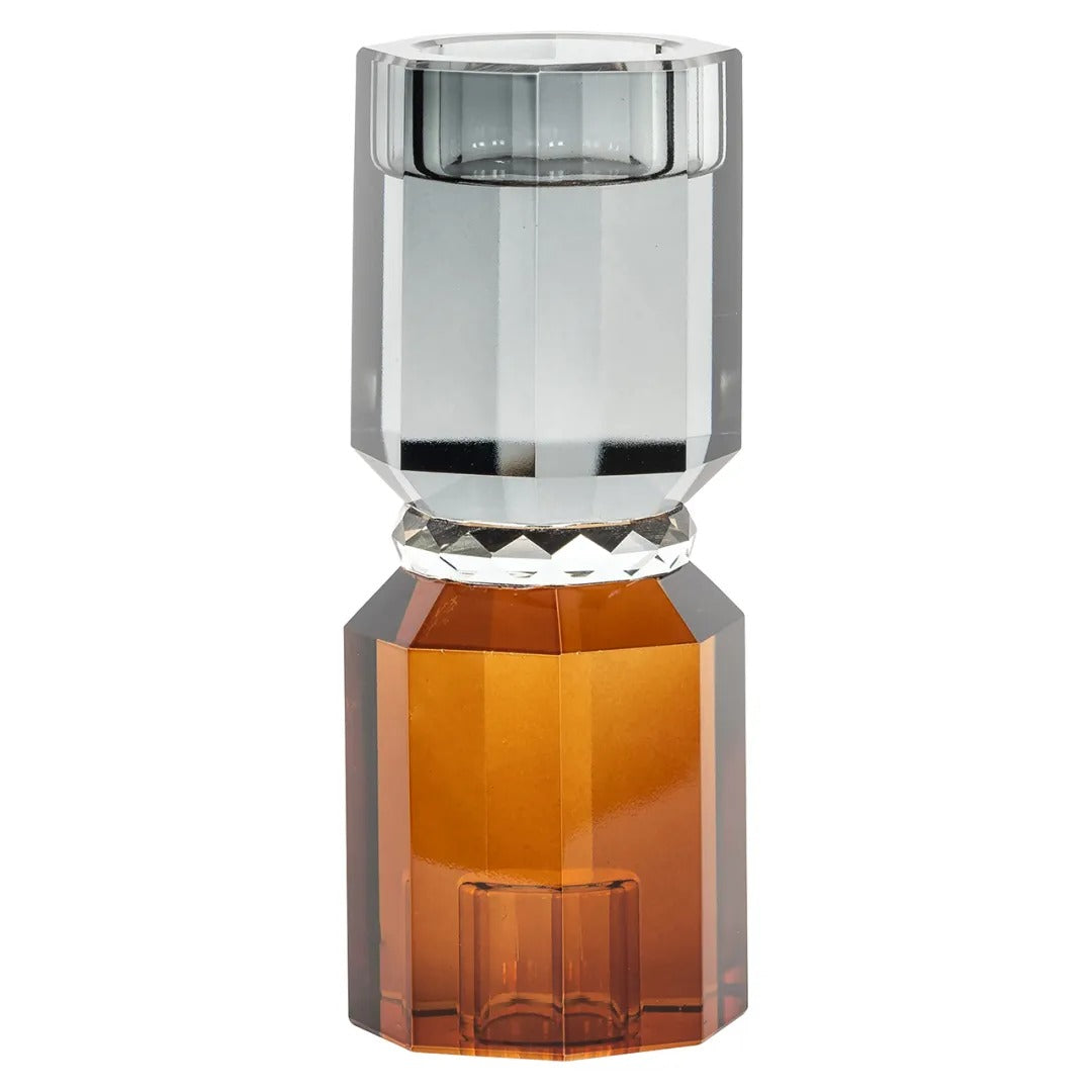 Grijze THYRA glazen kaarsenhouder met amberkleurige accenten