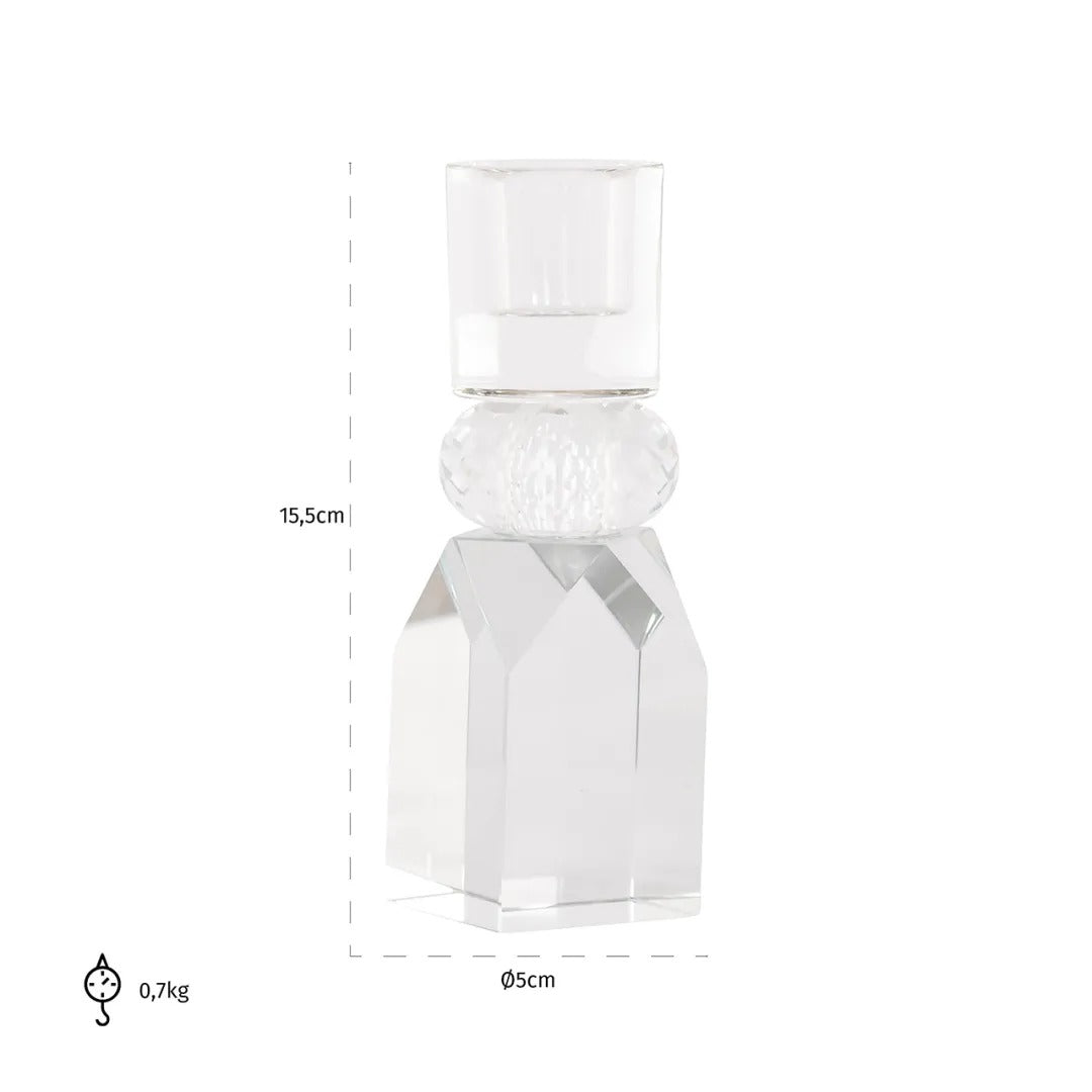 Moderne kaarsenhouder Yanou van glas is een originele decoratie die een uniek karakter aan uw interieur toevoegt. Zijn geometrische vorm betovert met een uniek ontwerp en trekt de aandacht.