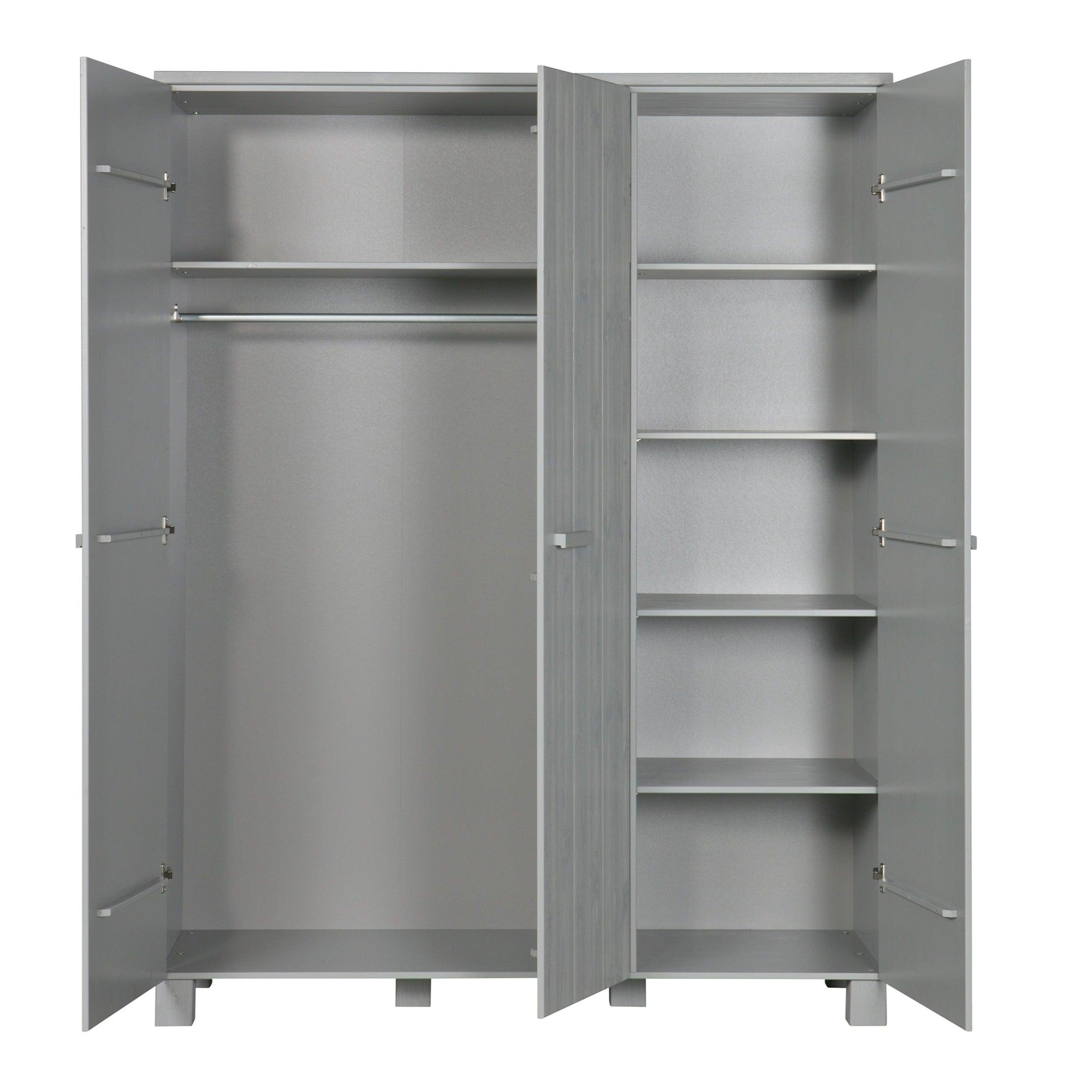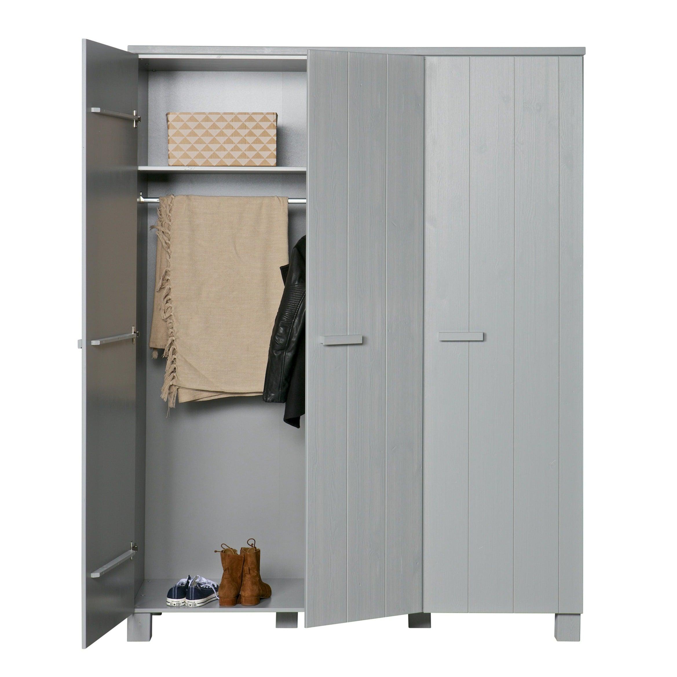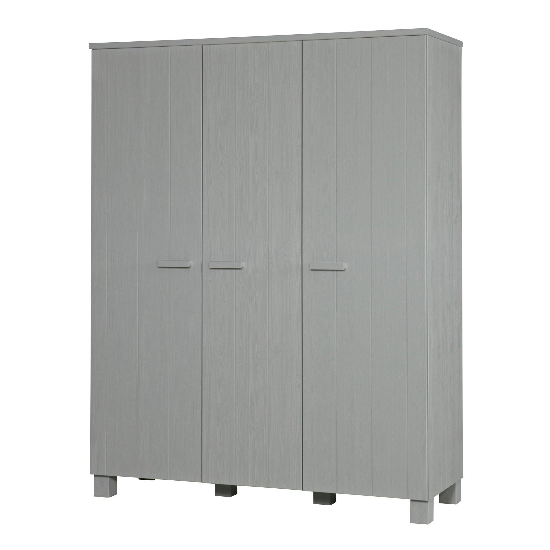 De kast Dennis is gemaakt van duurzame materialen die zorgen voor een lange levensduur en stevigheid. Drie deuren openen moeiteloos en onthullen een opbergruimte die groot genoeg is om alles op te bergen wat u nodig heeft - van kleding tot beddengoed of handdoeken.
