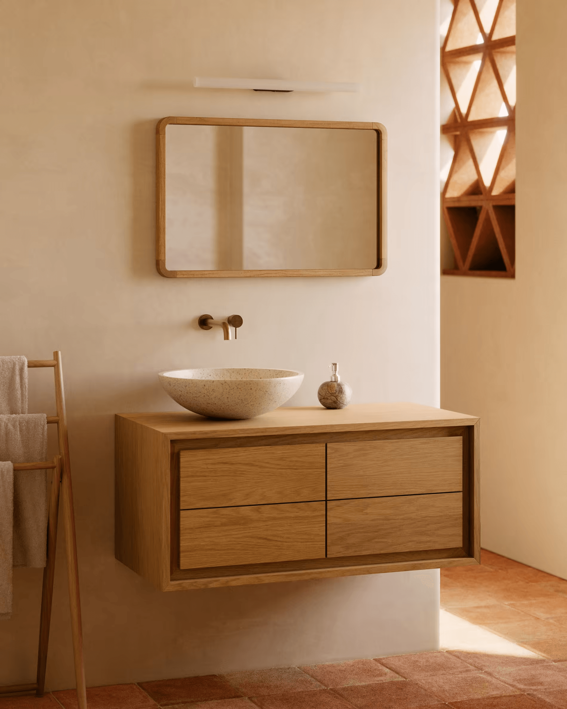 De Kenta-collectie is gemaakt van vochtbestendig massief teakhout, zodat u kunt ontspannen in een oosterse en design spa zonder uw huis te verlaten. Laat zien dat uw badkamer ook stijlvol is.