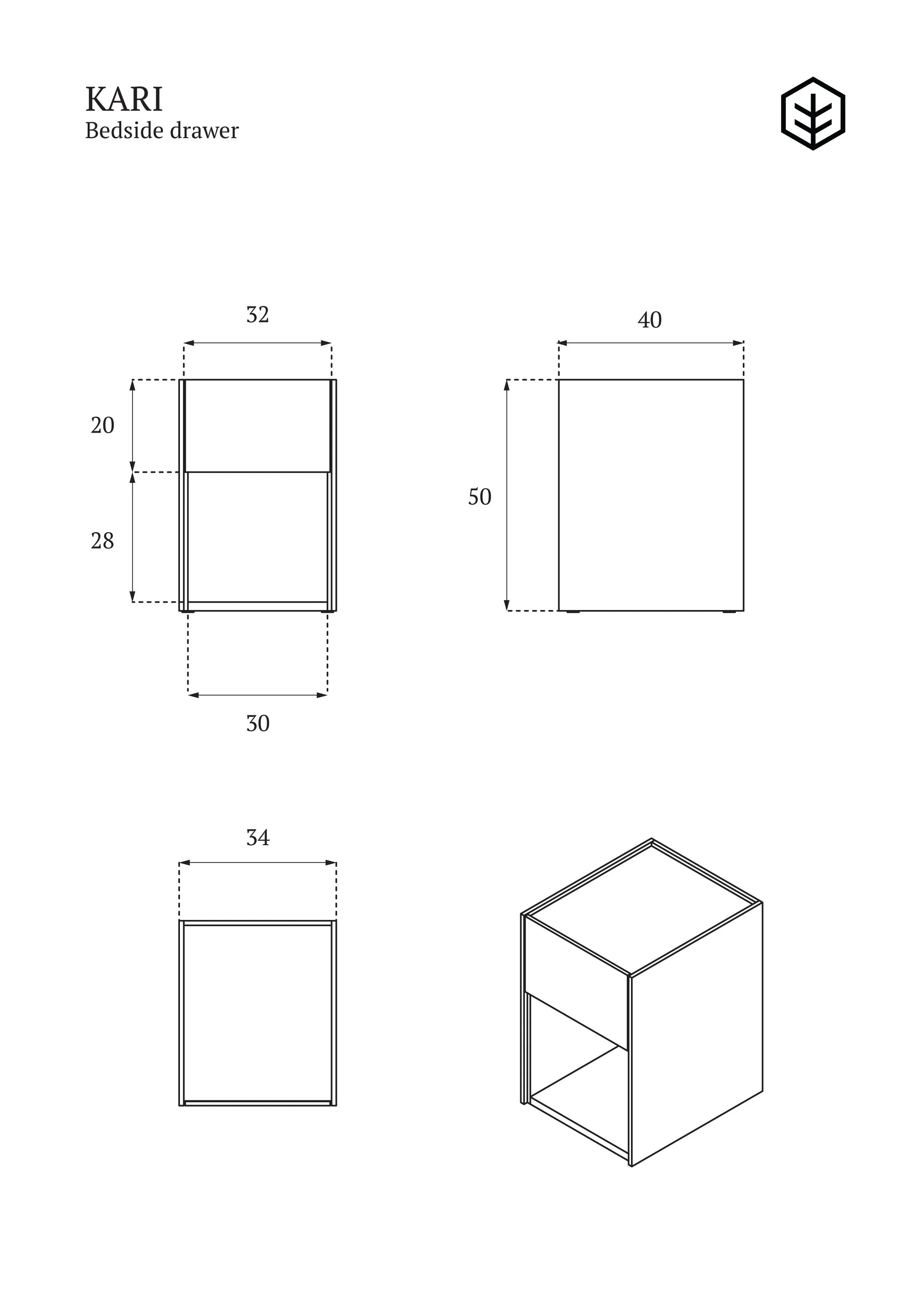 De praktische constructie van het kastje biedt zowel een open plank, ideaal voor boeken of decoraties, als een ruime lade die alle dagelijkse spulletjes verbergt. Het is een functioneel en tegelijkertijd esthetisch meubel, ontworpen met het oog op comfort en stijl. Kari is perfect voor slaapkamers ingericht in Scandinavische, Japandi of klassieke moderne stijl.