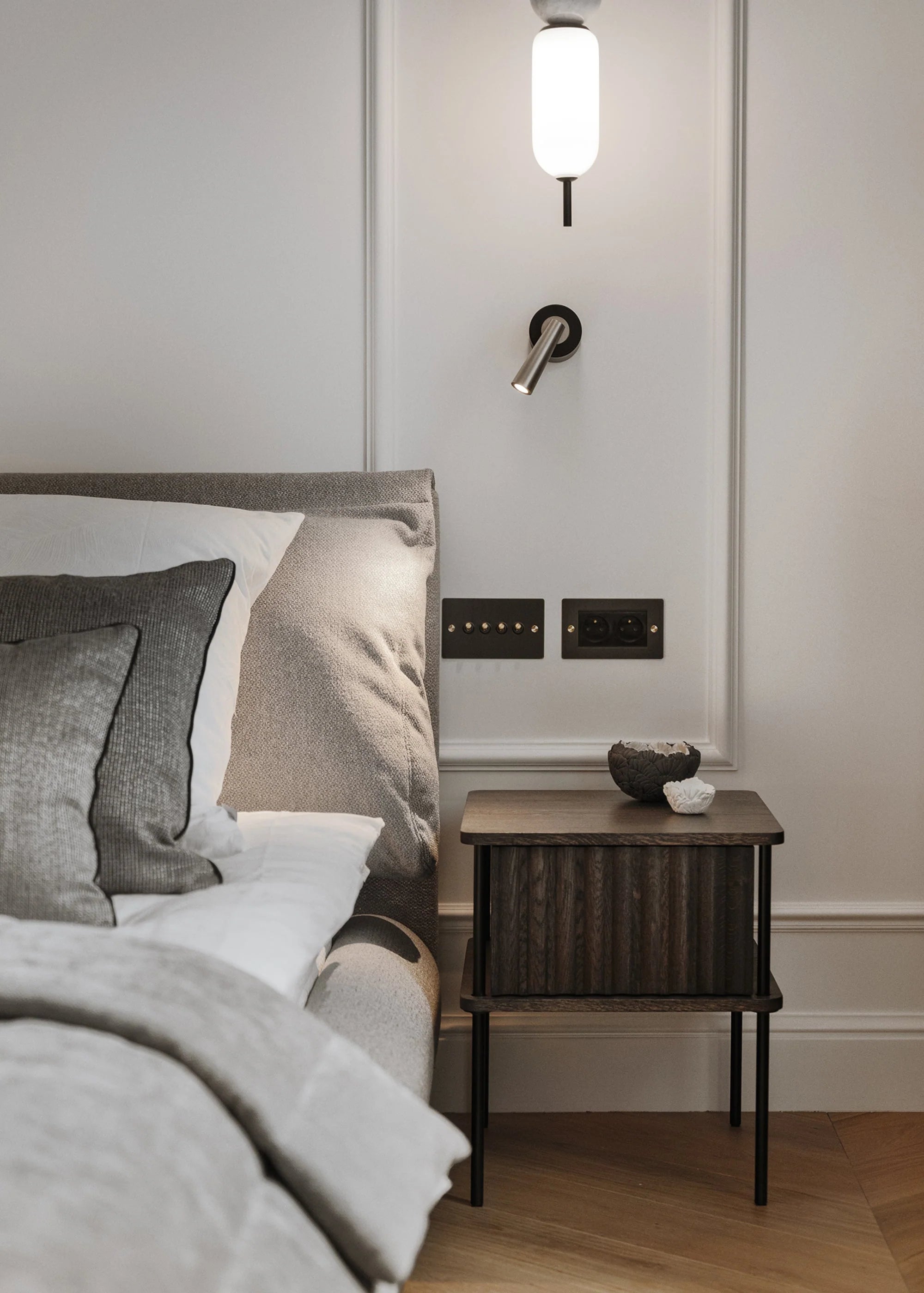 Verhoogd boven de vloer, krijgt Maya een visuele lichtheid, terwijl het tegelijkertijd een solide constructie biedt, volledig gemaakt van massief hout. De praktische lade maakt het mogelijk om dagelijkse voorwerpen comfortabel op te bergen, waardoor dit nachtkastje niet alleen een esthetisch, maar ook een volledig functioneel element van de slaapkamerinrichting is.