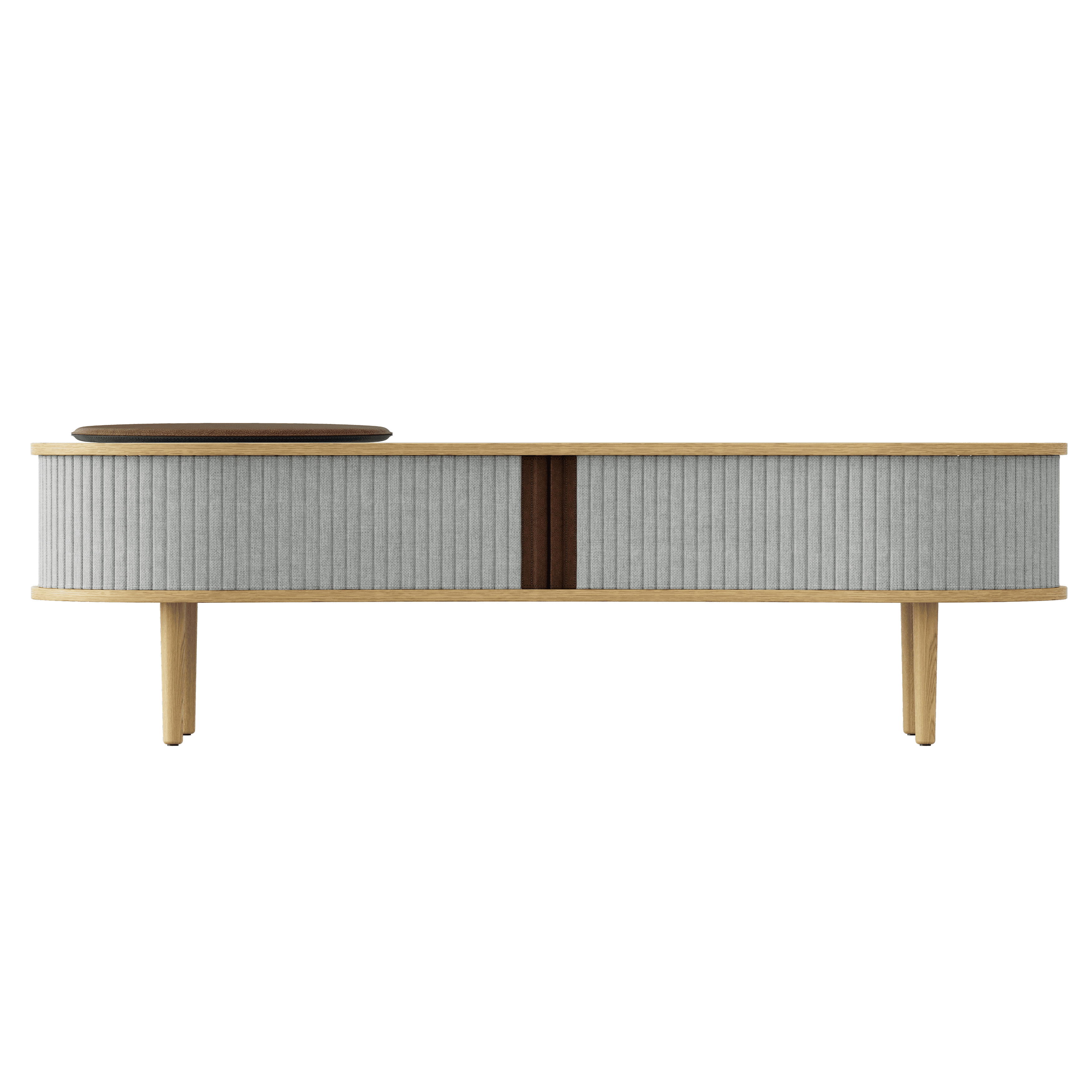 De multifunctionele tv-bank Audacious, die zowel kan dienen als een comfortabele RTV-kast als een praktische zitplaats. Met een doordachte kabelopening aan de achterkant, vergeet je de wirwar van kabels. Groot genoeg om al je bovenkleding in de hal op te bergen, terwijl je tegelijkertijd een comfortabele plek hebt om je schoenen aan te trekken.