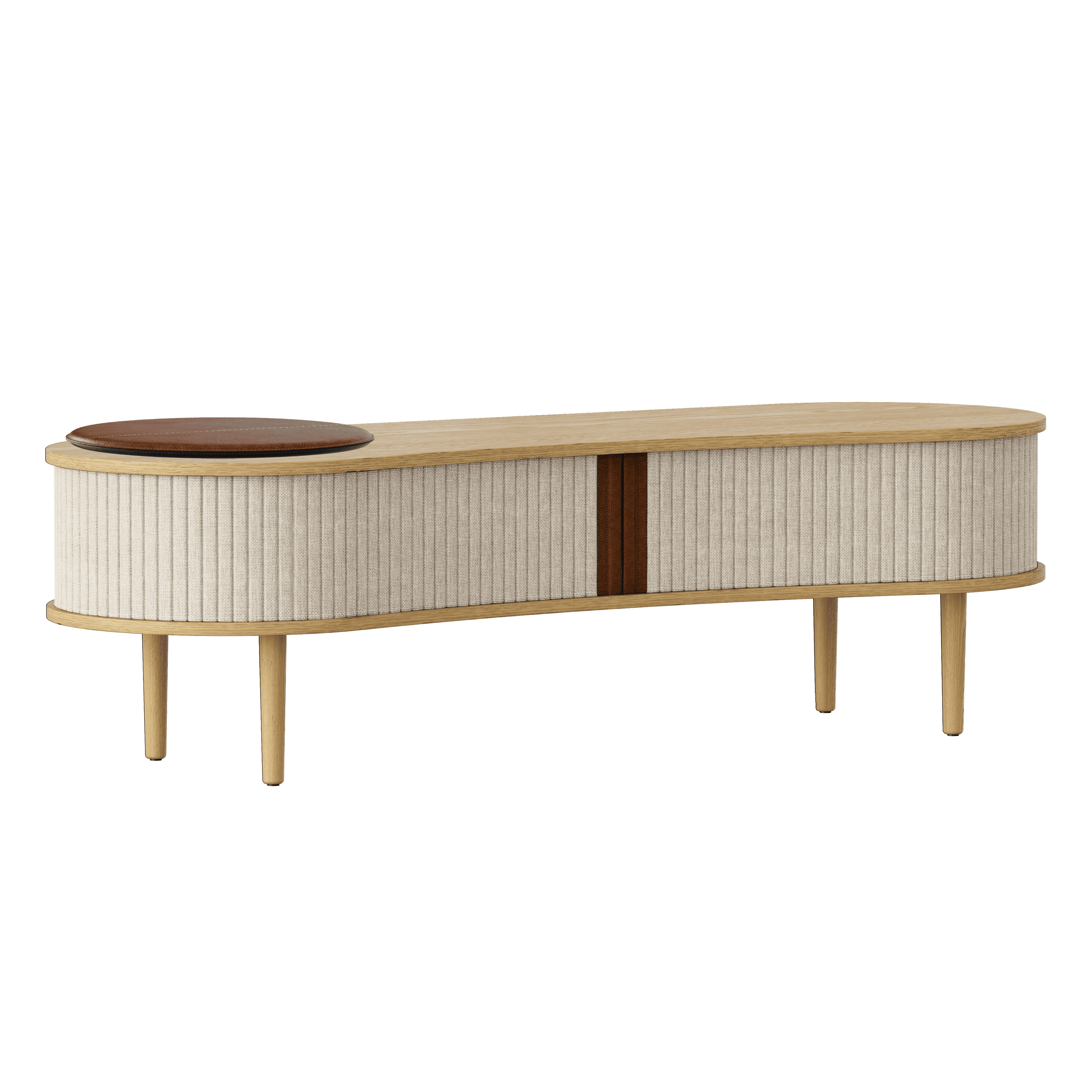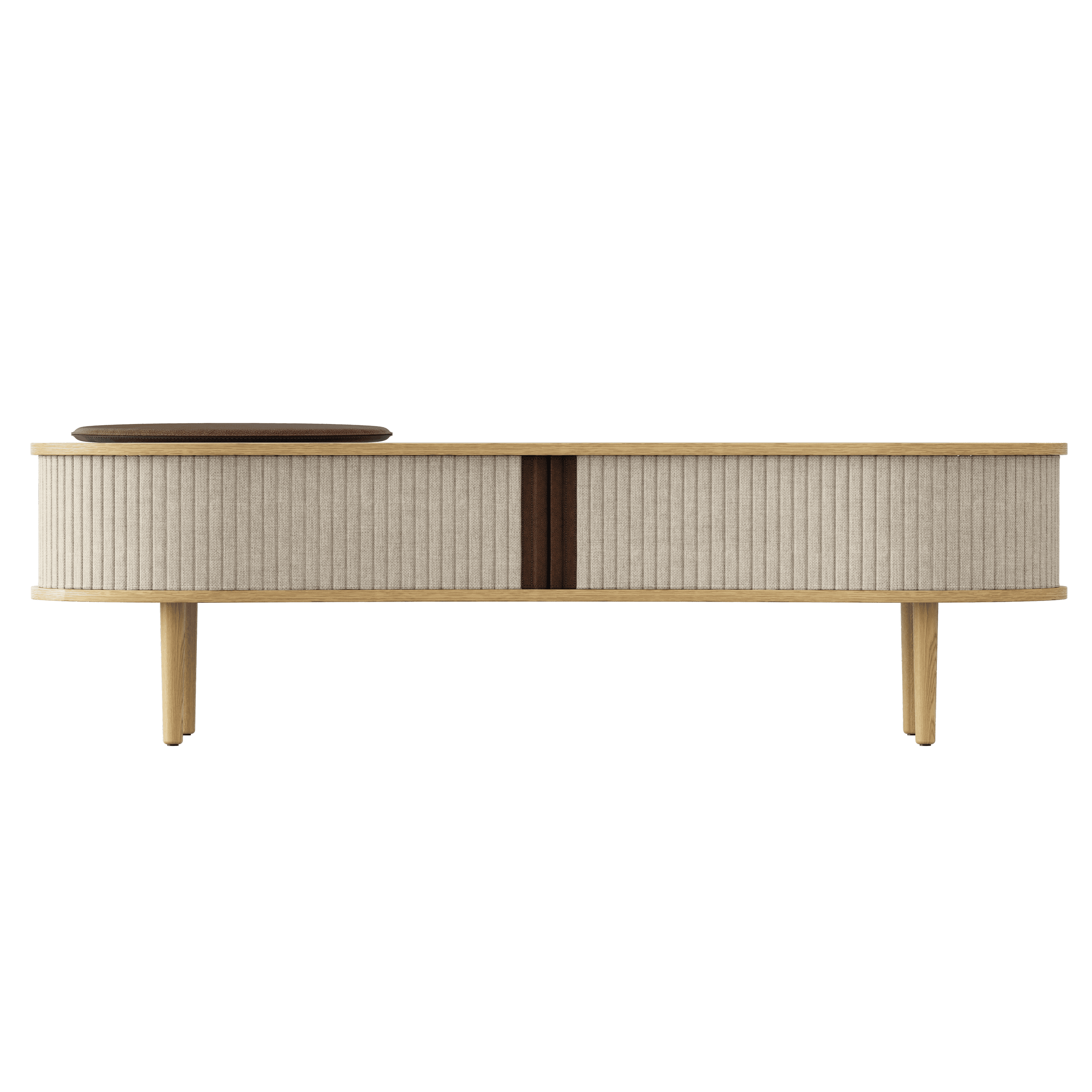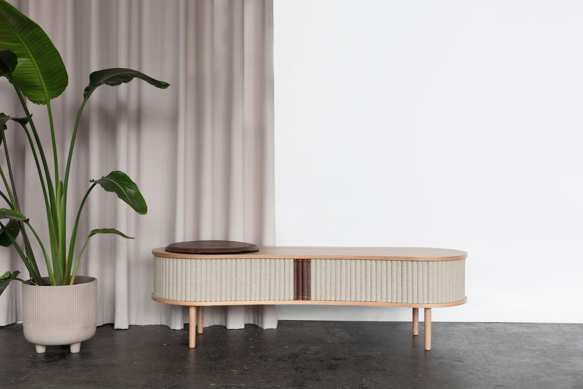 De multifunctionele tv-bank Audacious, die zowel kan dienen als een comfortabele RTV-kast als een praktische zitplaats. Met een doordachte kabelopening aan de achterkant, vergeet je de wirwar van kabels. Groot genoeg om al je bovenkleding in de hal op te bergen, terwijl het je tegelijkertijd een comfortabele zitplaats biedt tijdens het aantrekken van je schoenen.