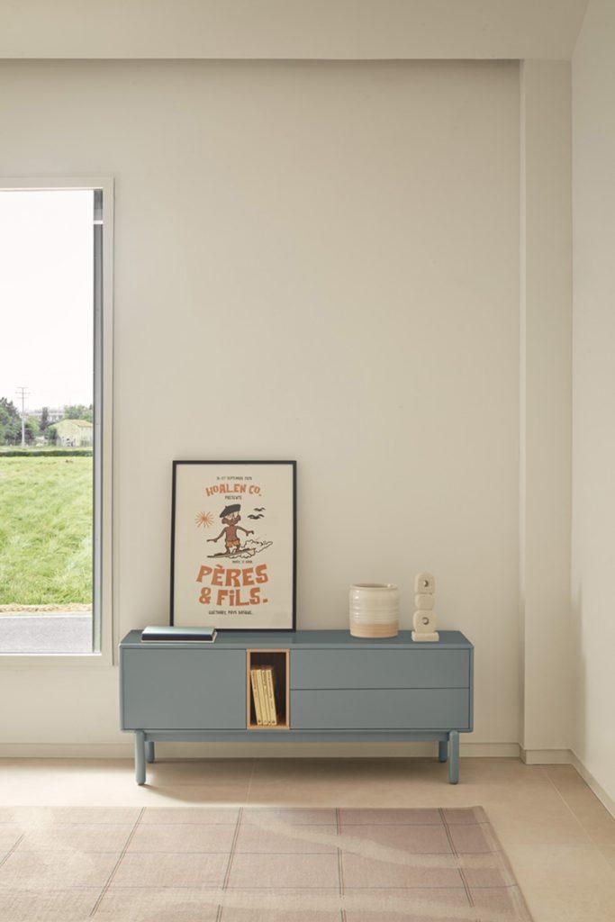 De delicate, minimalistische pootjes geven de hele constructie een lichte uitstraling, en de uitgesproken grijze kleur past perfect bij verschillende interieurstijlen. Als u op zoek bent naar een stijlvolle en functionele kleine RTV-kast voor uw woonkamer, dan is Corvo de juiste keuze.