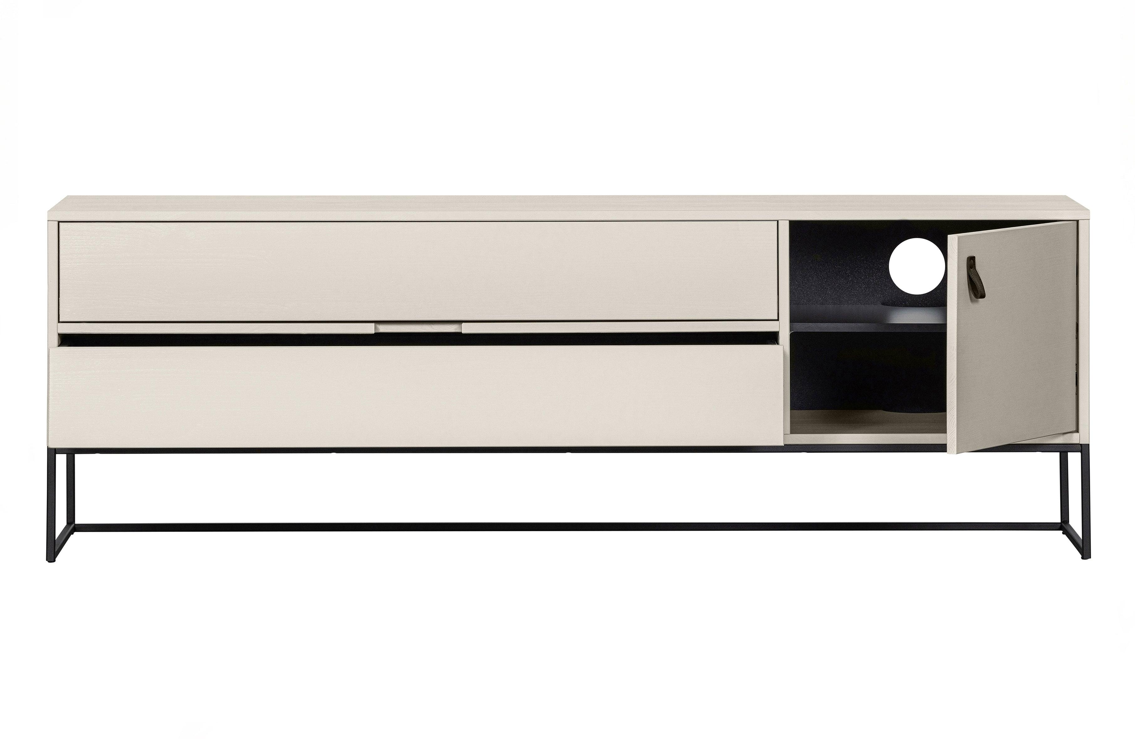 De constructie van de kast Silas garandeert functionaliteit op het hoogste niveau. Het brede oppervlak maakt het mogelijk om zelfs grote televisies te plaatsen, terwijl praktische planken en lades ruimte bieden voor alle noodzakelijke RTV-accessoires - van afstandsbedieningen tot consoles en film- en spelcollecties.