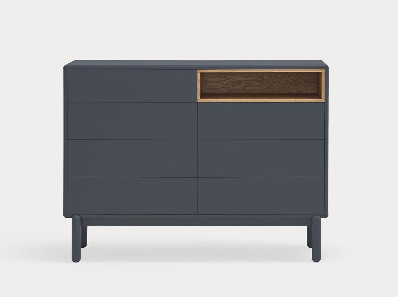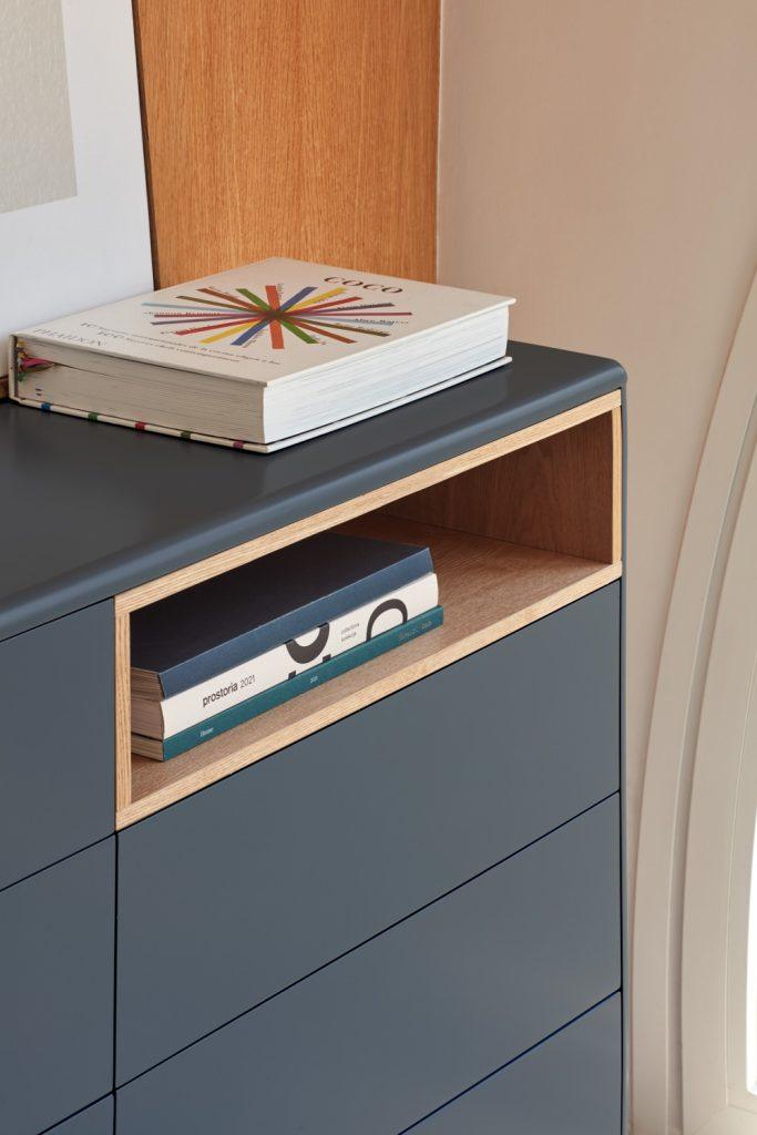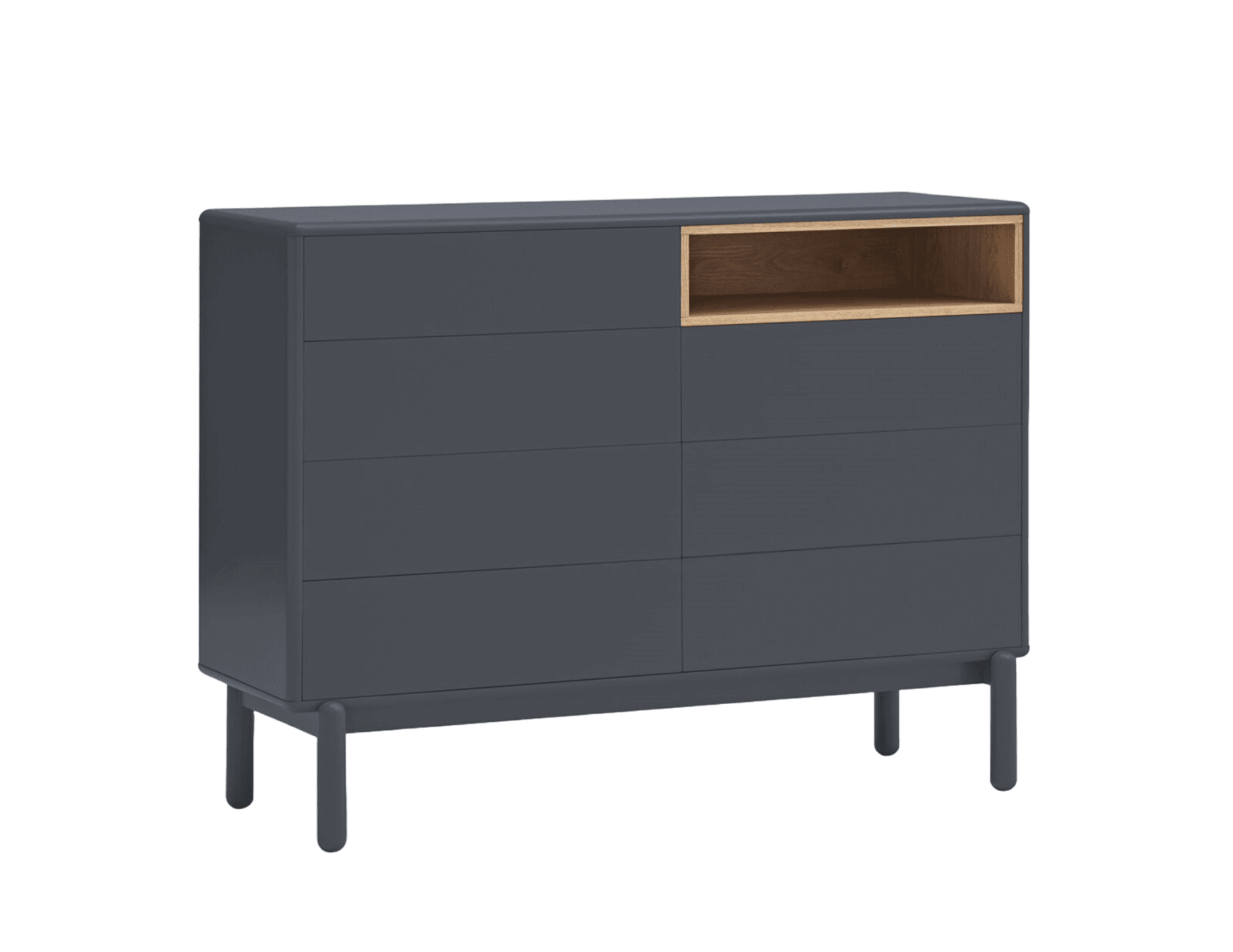 Funkcjonalna szafka Corvo spełni oczekiwania nawet najbardziej wymagających. Dzięki połączeniu naturalnej struktury drewna z eleganckim, antracytowym kolorem szafka do salonu Corvo prezentuje się jak z okładki magazynu wnętrzarskiego. Wygodne szuflady sprawią, że każda przestrzeń stanie się lepiej zorganizowana.