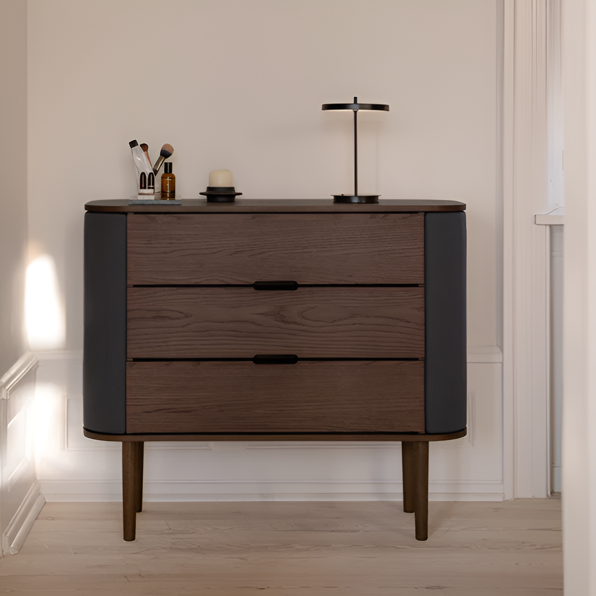 De Treasures Dresser is een elegante en functionele kast die subtiele rondingen combineert met praktische opbergruimte. Achter de afgeronde zijdeurtjes, die openen als vleugels, bevindt zich een plek voor sieraden en kleine voorwerpen. Drie ruime lades zonder handgrepen bieden ruimte voor truien, servies of kantooraccessoires.