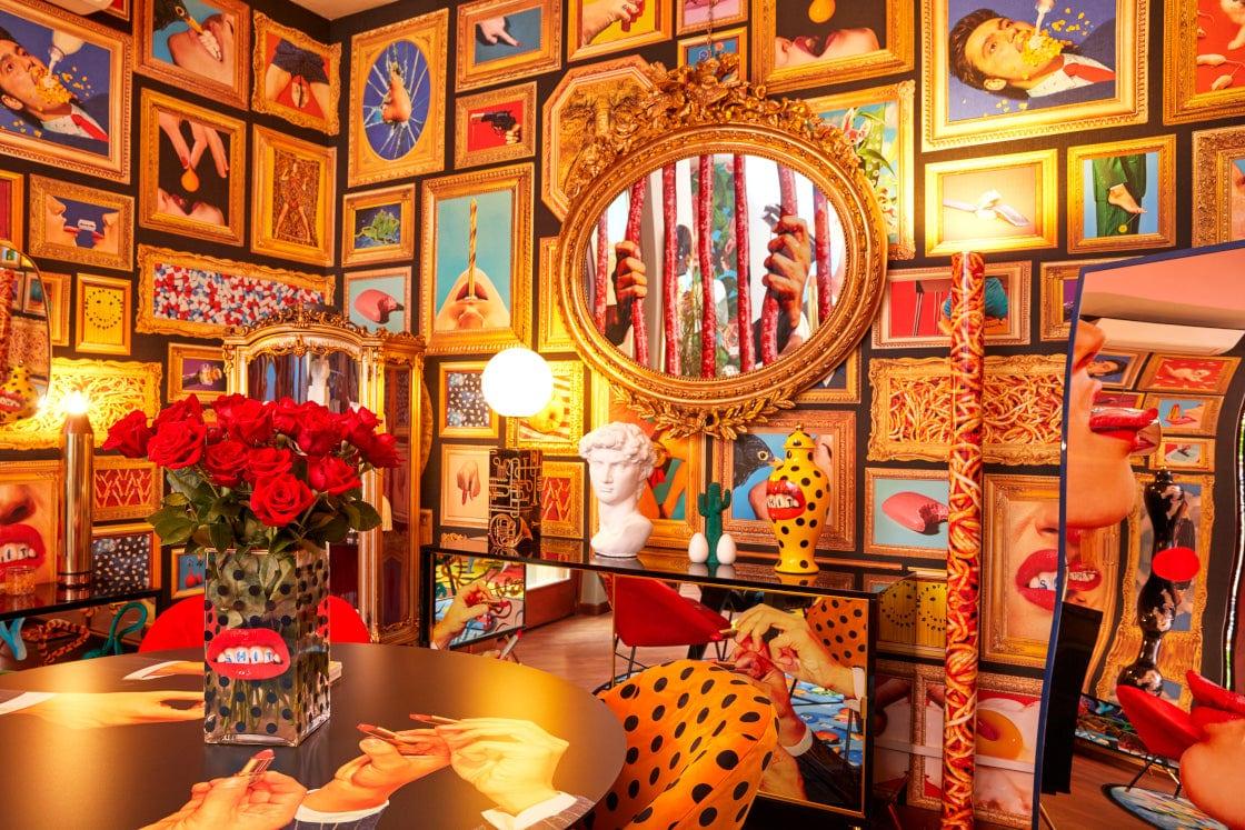 Designerskast is een nieuw project van de Italiaanse koning van de avant-garde — Seletti, die als een poort naar een andere, surrealistische dimensie, de ruimte een unieke karakter zal geven. De glazen fronten van de kast worden gekenmerkt door een uitgesproken, dynamisch en licht controversieel collage, dat een origineel kunstwerk vormt.