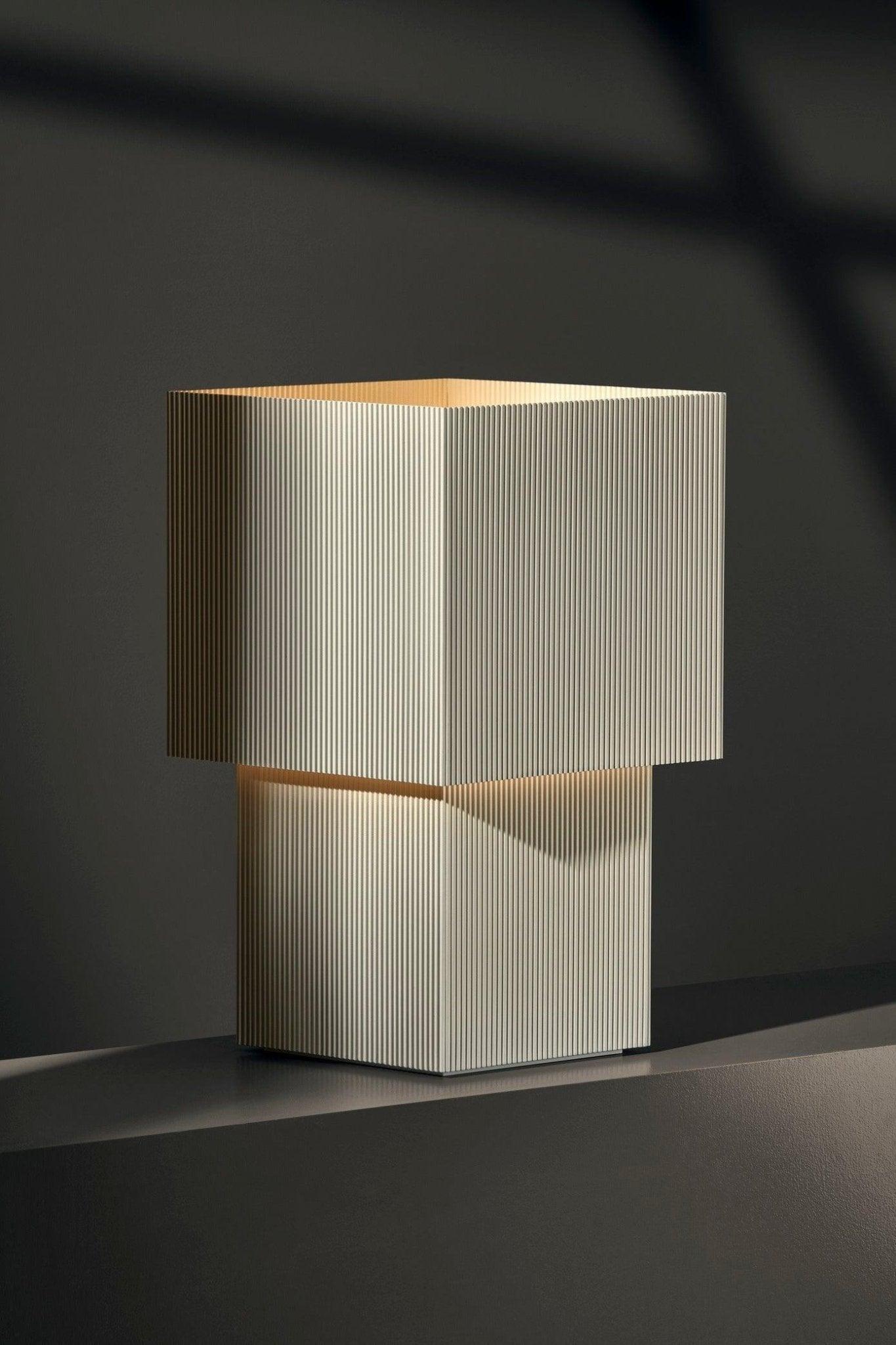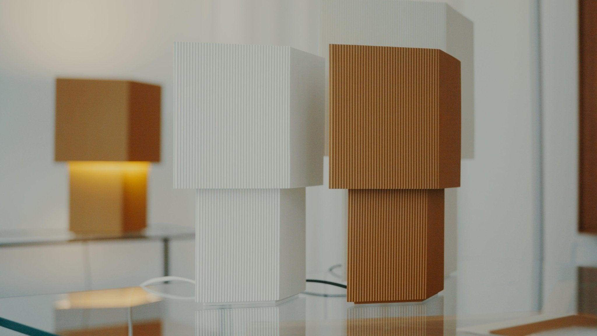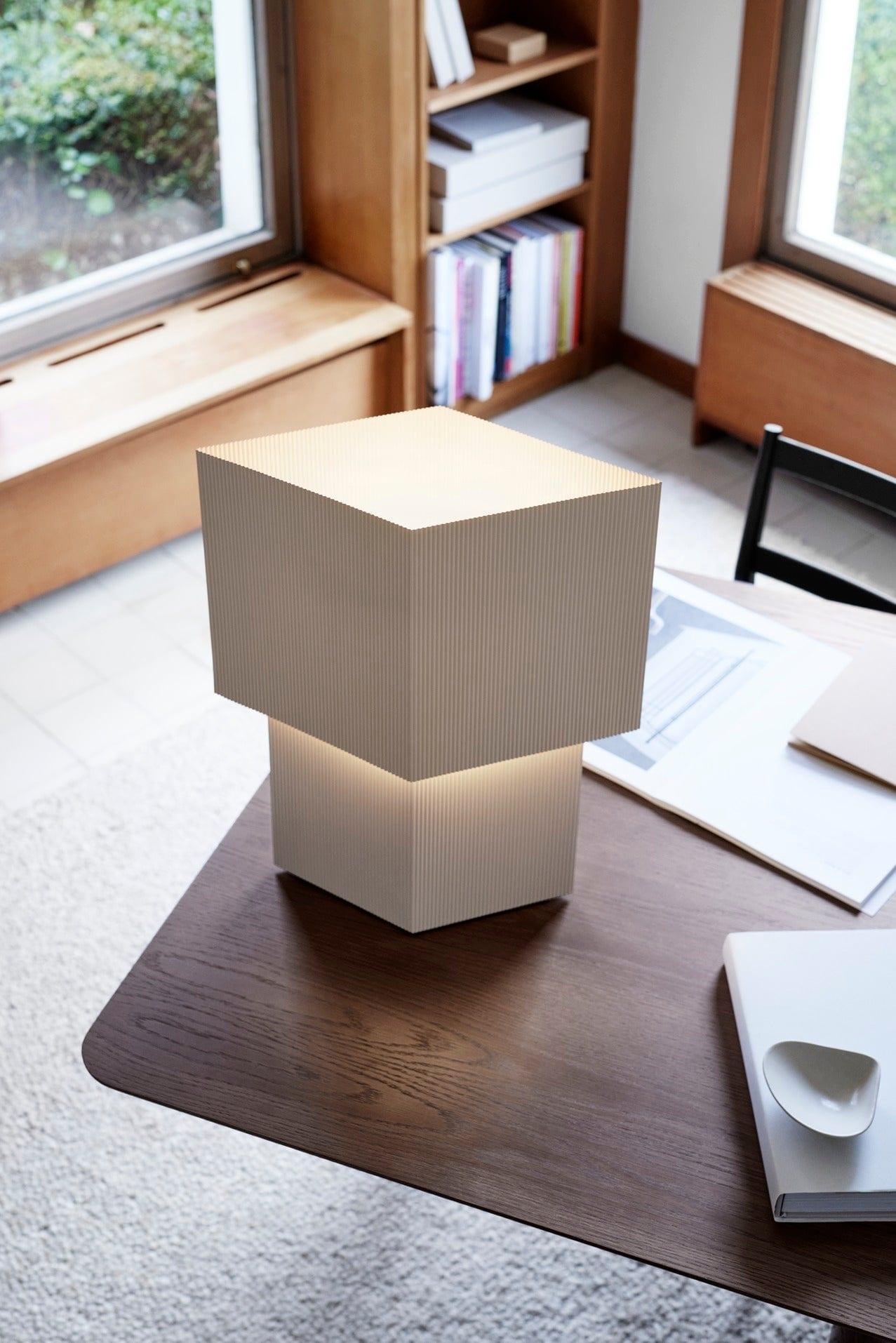 Bureau lamp Romb is een voorbeeld van doordacht, sculpturaal design dat de aandacht trekt met zijn originele vorm. Het ontwerp is geïnspireerd op de structuur van golfkarton, en de kenmerkende, geometrische silhouette steunt op twee modules die op elkaar zijn gestapeld. Hierdoor presenteert de lamp Romb zich licht en modern, terwijl het tegelijkertijd een grafisch accent in de ruimte brengt.