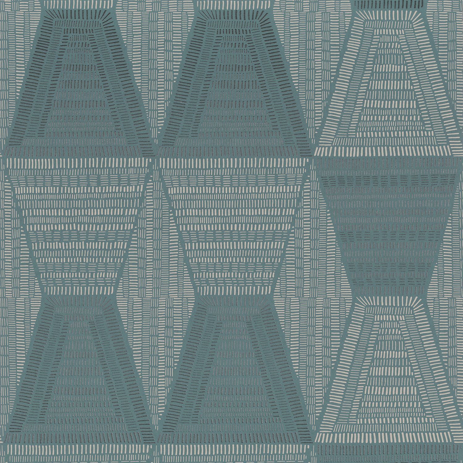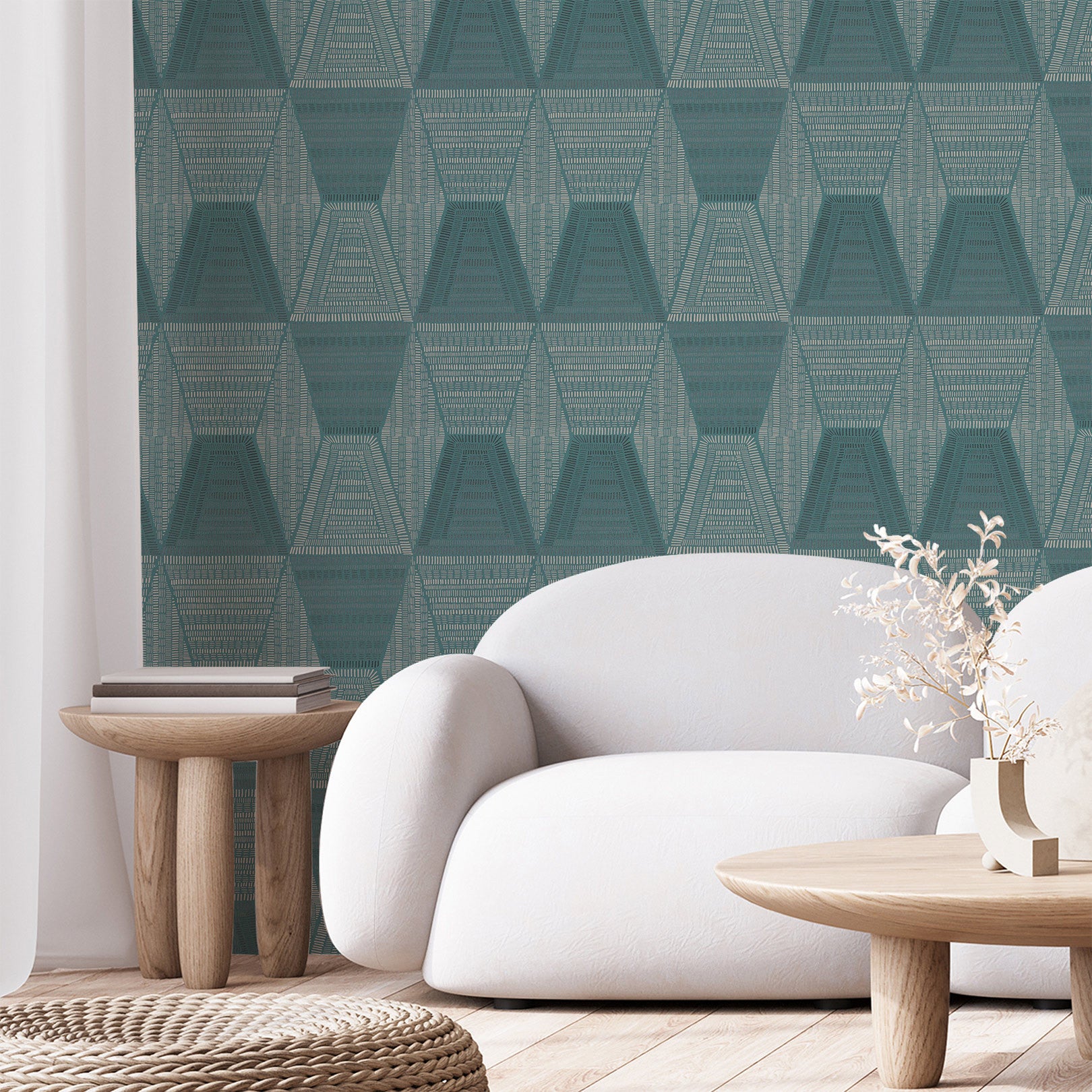 Abstrakte patroonbehang DAIA - VERT IMPERIAL gedempt blauw