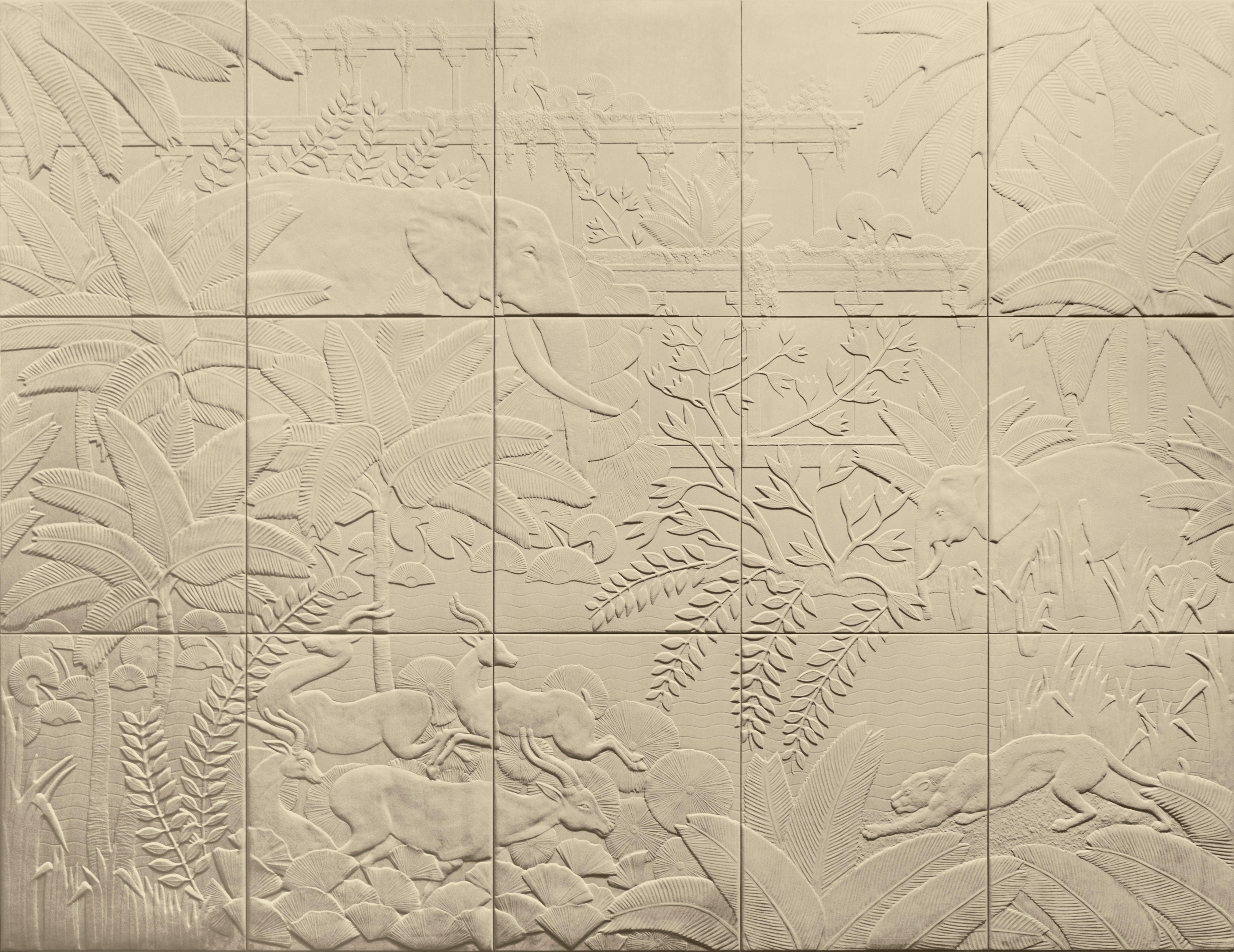 Dit mythische tafereel is gesitueerd in de weelderige natuur van Babylon, tussen de rivieren de Tigris en de Eufraat, in een regio waar landbouw en veeteelt zijn ontstaan. Het fantasierijke beeld toont olifanten, gazellen, dadelpalmen en de overblijfselen van oude tempels. Een origineel kunstwerk van Frédérique et Rob Whittle – en Max.