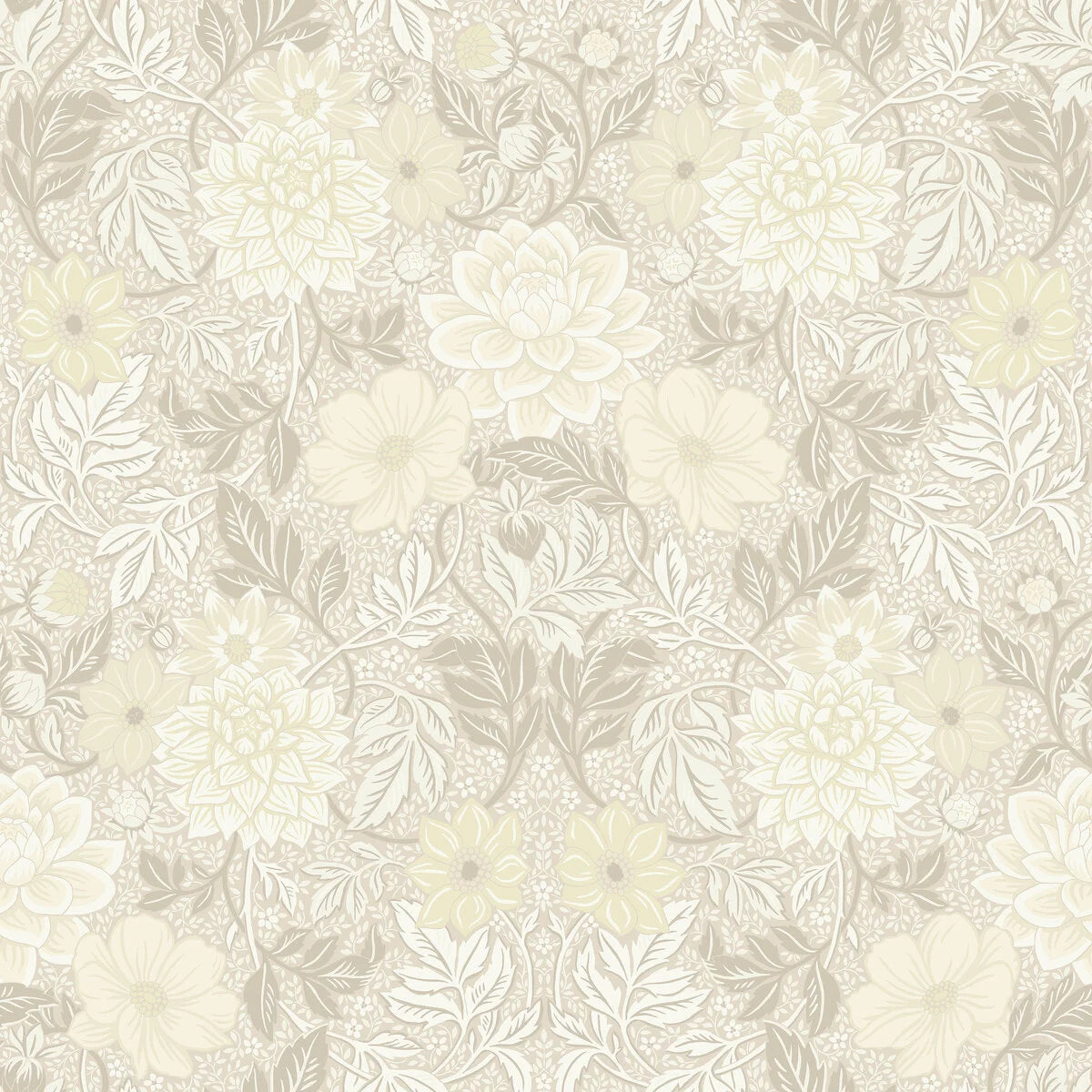Vliesbehang met plantaal patroon DAHLIA GARDEN warm wit met beige