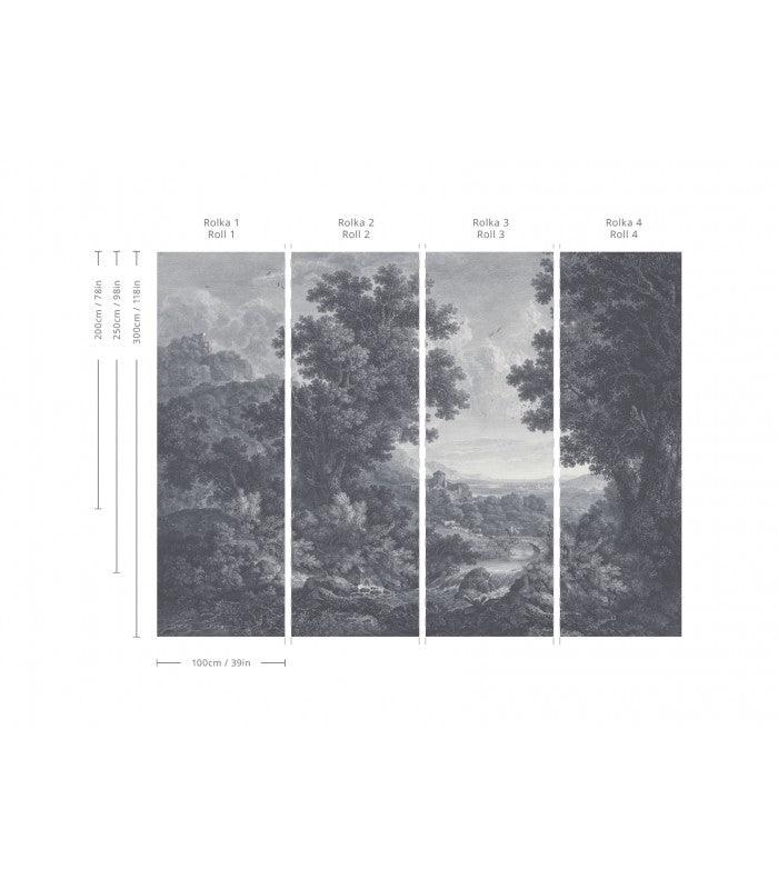Vliesbehang met het landschap PICTURESQUE VALLEY OF SERENITY blauwgrijs