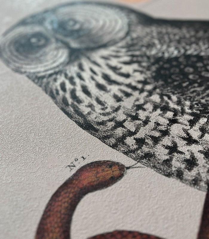 Tapeta flizelinowa z motywem zwierzęcym PINK OWLS beżowy