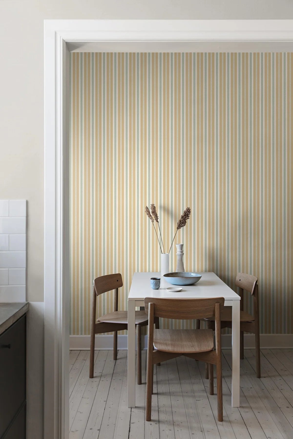Gestreepte behang HEDDA geel met wit
