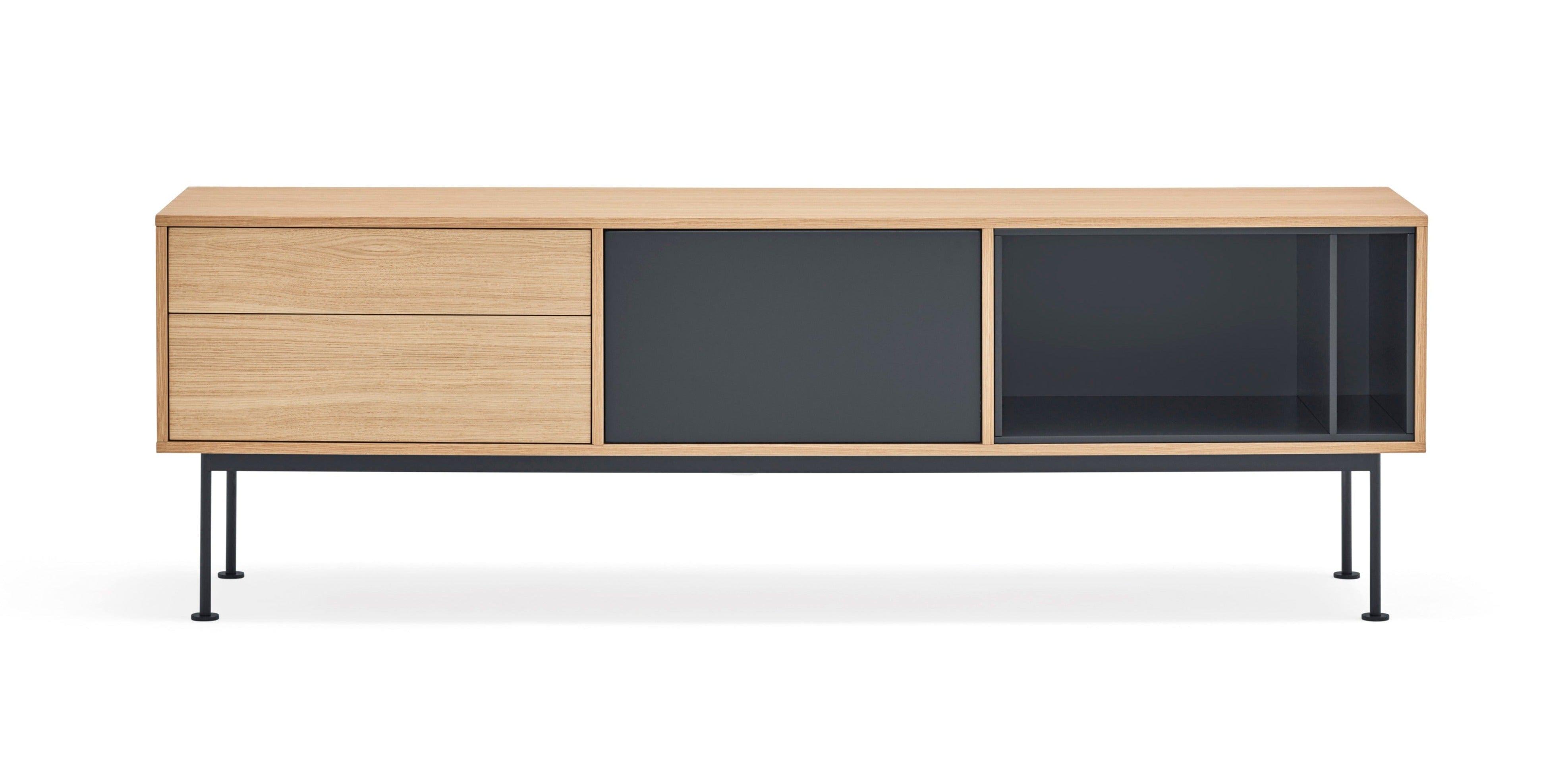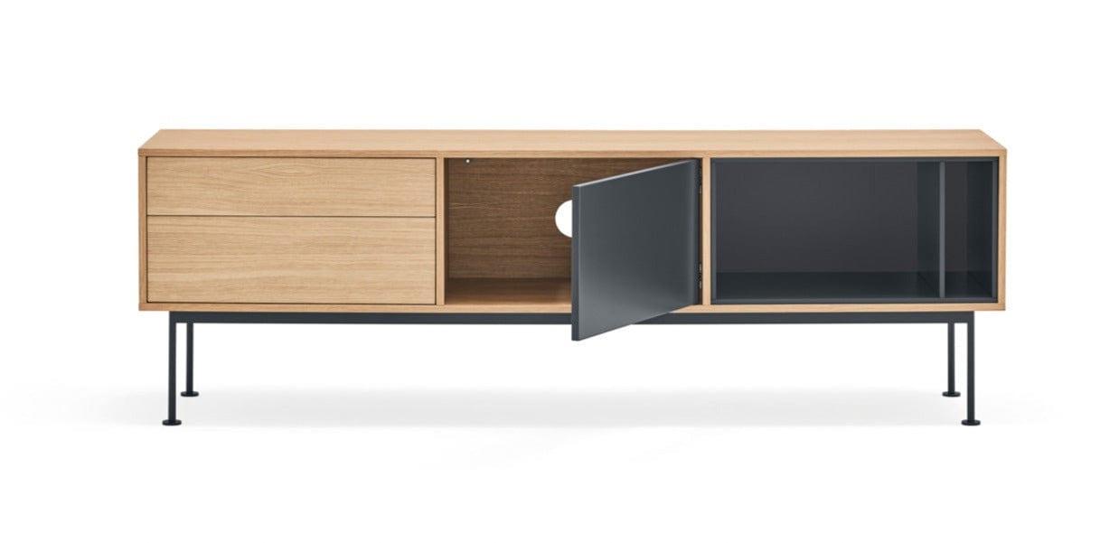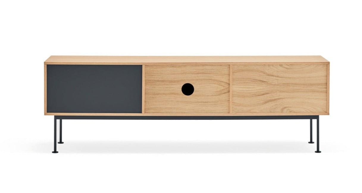 De nauwkeurige afwerking en het geweldige gevoel voor proporties van de ontwerpers van het Spaanse merk Teulat zorgen ervoor dat u kunt genieten van dit stuk gebruikskunst recht vanuit uw woonkamer. De combinatie van hout met een diepe grijstint heeft de RTV-kast een spreekwoordelijke flair gegeven.