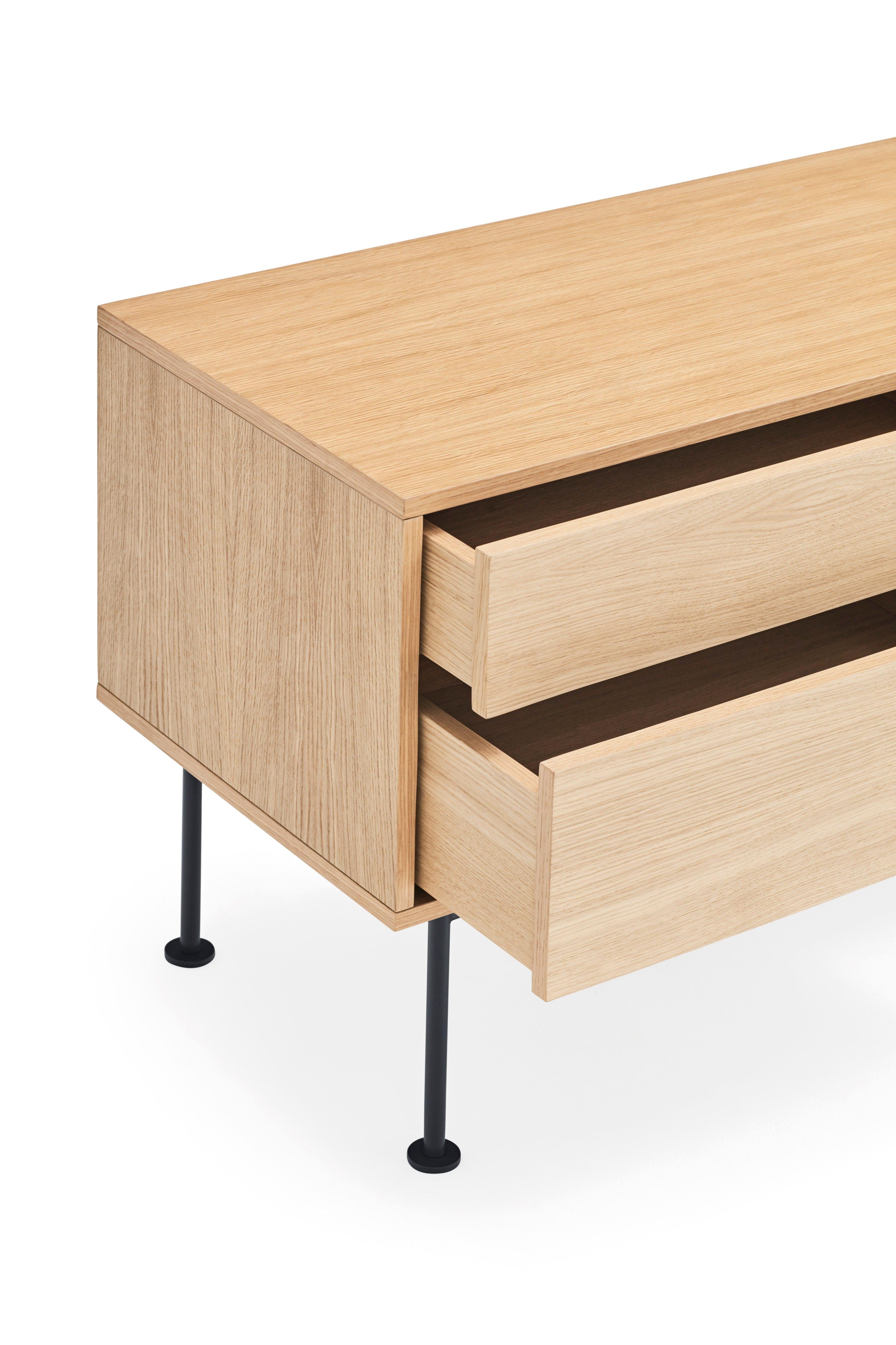De perfect bewaarde vorm en de klassieke constructie s RTV-kast Yoko maken dit een tijdloos ontwerp. Bovendien is de staande kast RTV uit de Yoko-collectie vervaardigd uit hoogwaardige materialen, zoals eikenfineer en roestvrij staal.
